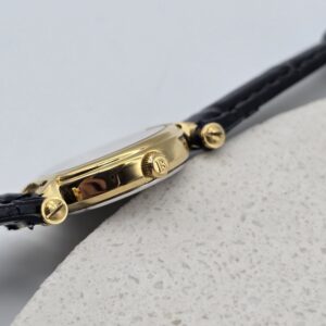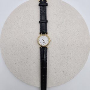 Biała tarcza z pełnym napisem Burberrys oraz emblematem jeźdźca to piękny historyczny detal — po 1999 roku marka skróciła nazwę do Burberry. Złote indeksy i smukłe wskazówki zapewniają czytelność i subtelny blask. Kompaktowa koperta 23 mm układa się lekko na nadgarstku, a charakterystyczne uszy koperty nadają całości biżuteryjnej lekkości. Nowy, czarny pasek z tłoczeniem jest miękki i wygodny, z zakresem regulacji 15,5–19 cm. Model 3200 świetnie łączy się z klasyką garderoby — od białej koszuli po jedwabną sukienkę. Wybierz ten model i pozwól, by dyskretnie dopełnił Twoją kolekcję zegarków. |