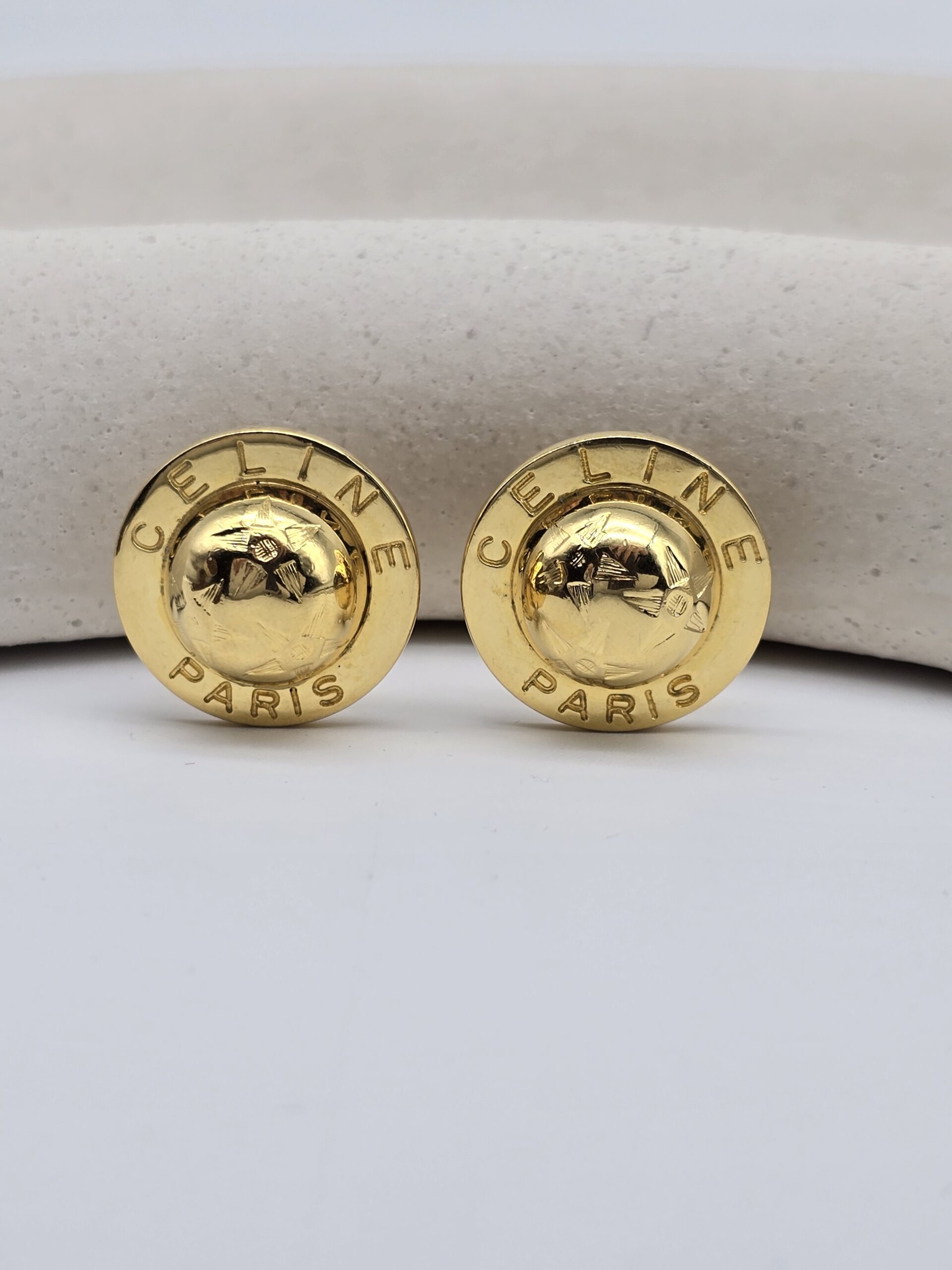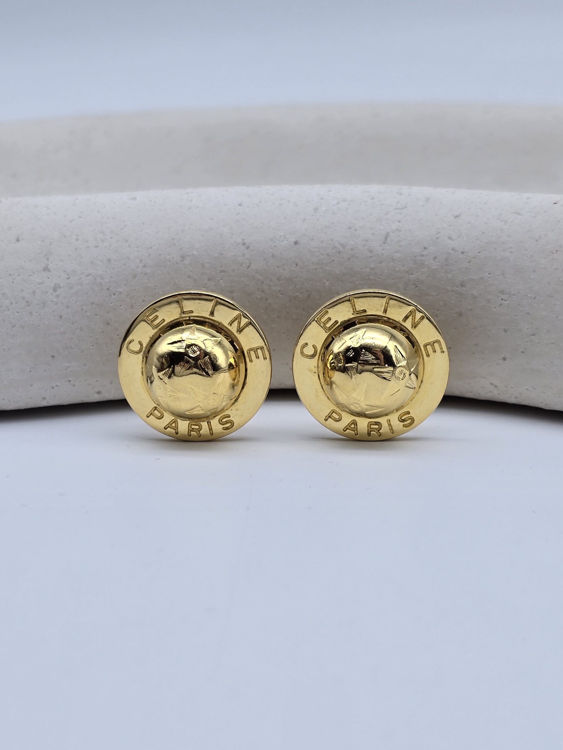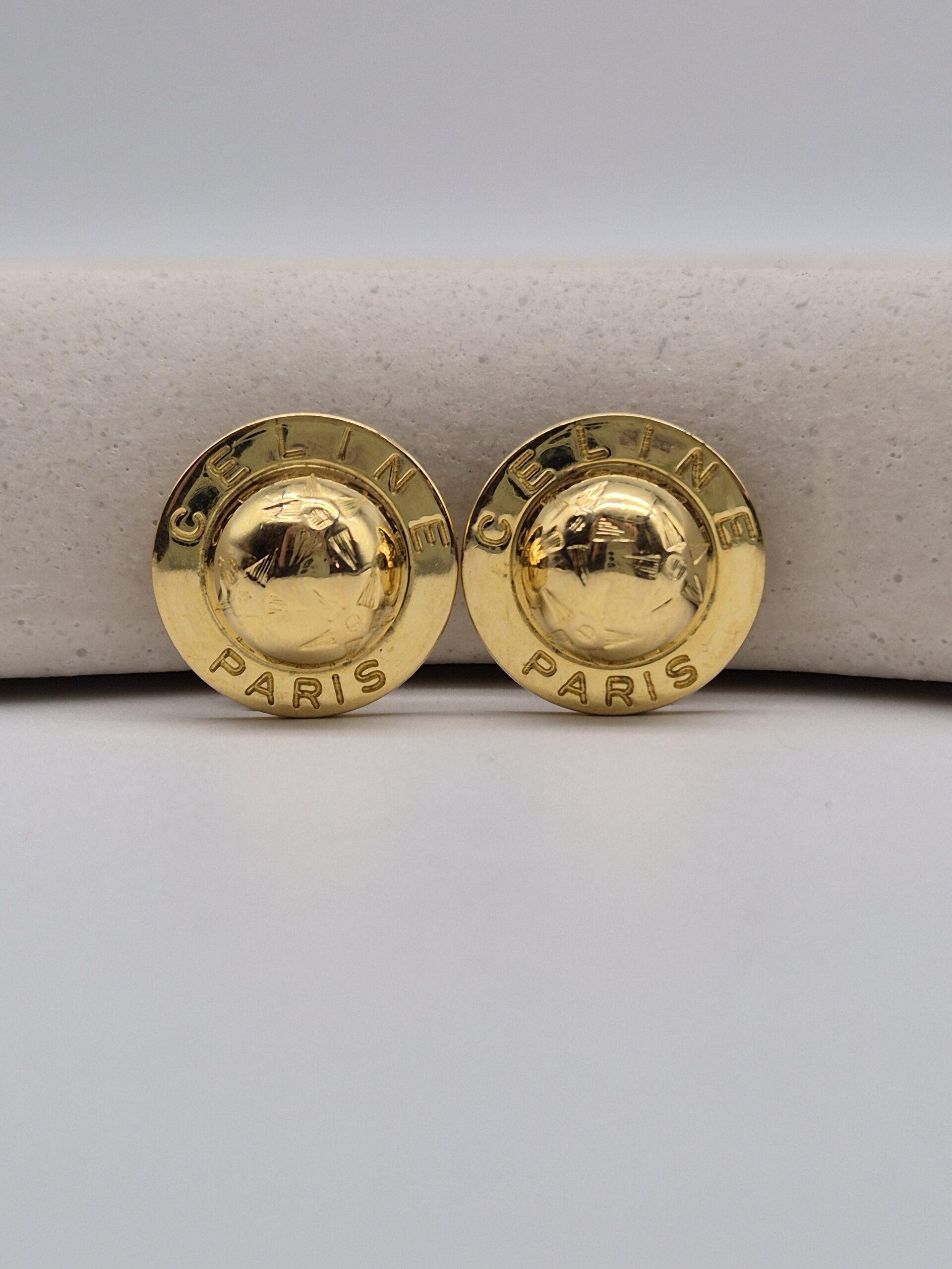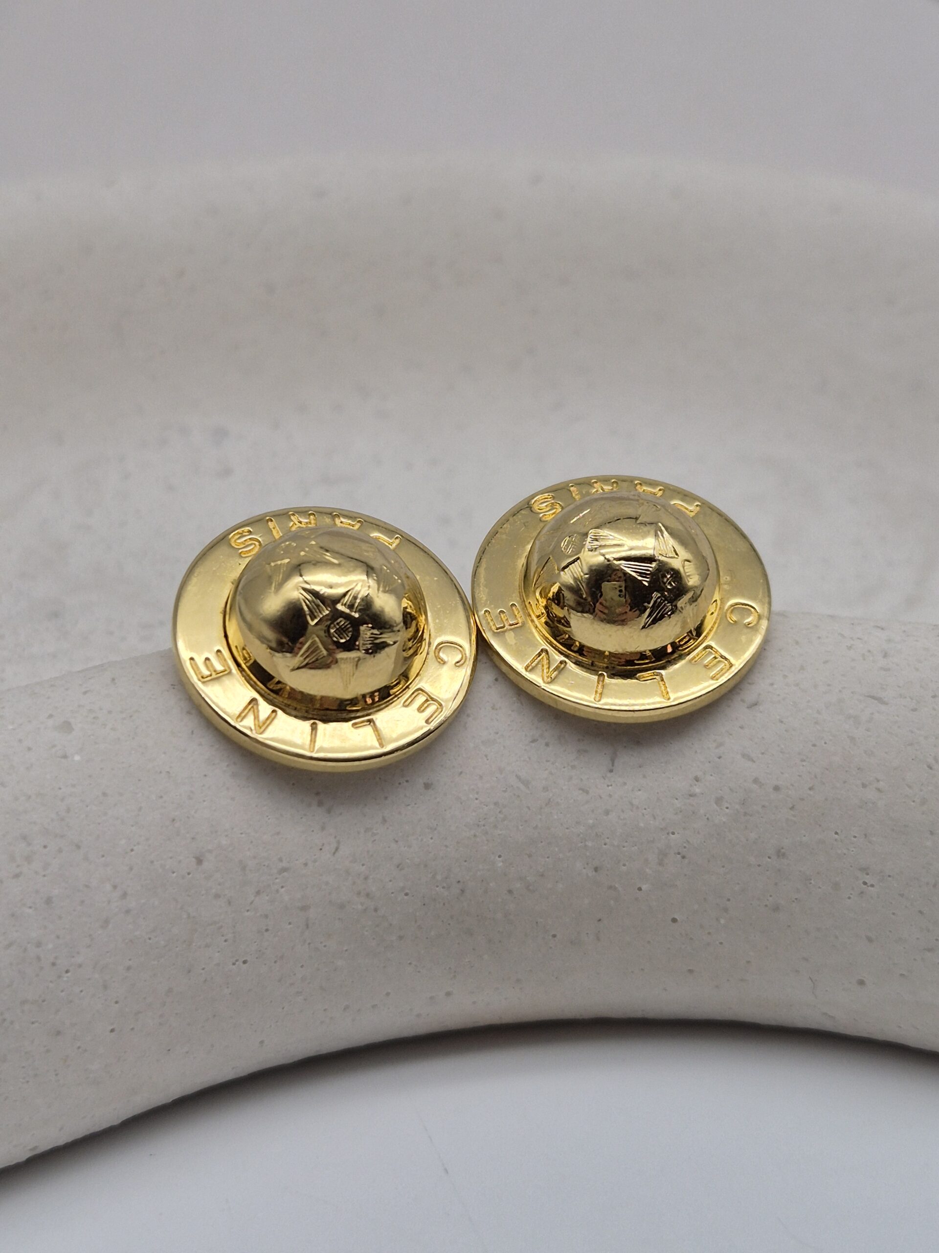 CELINE – złote klipsy vintage globusy, lata 90.