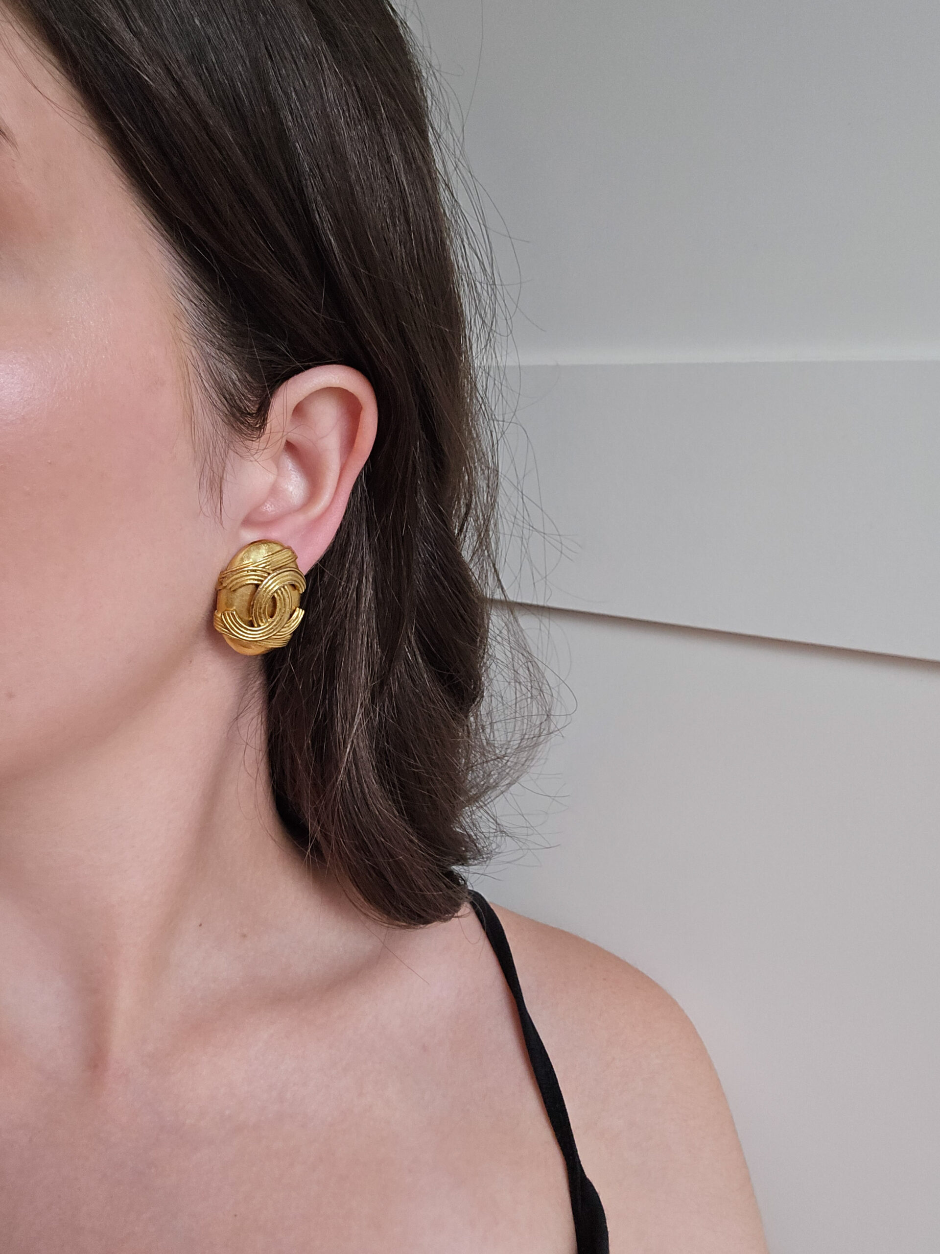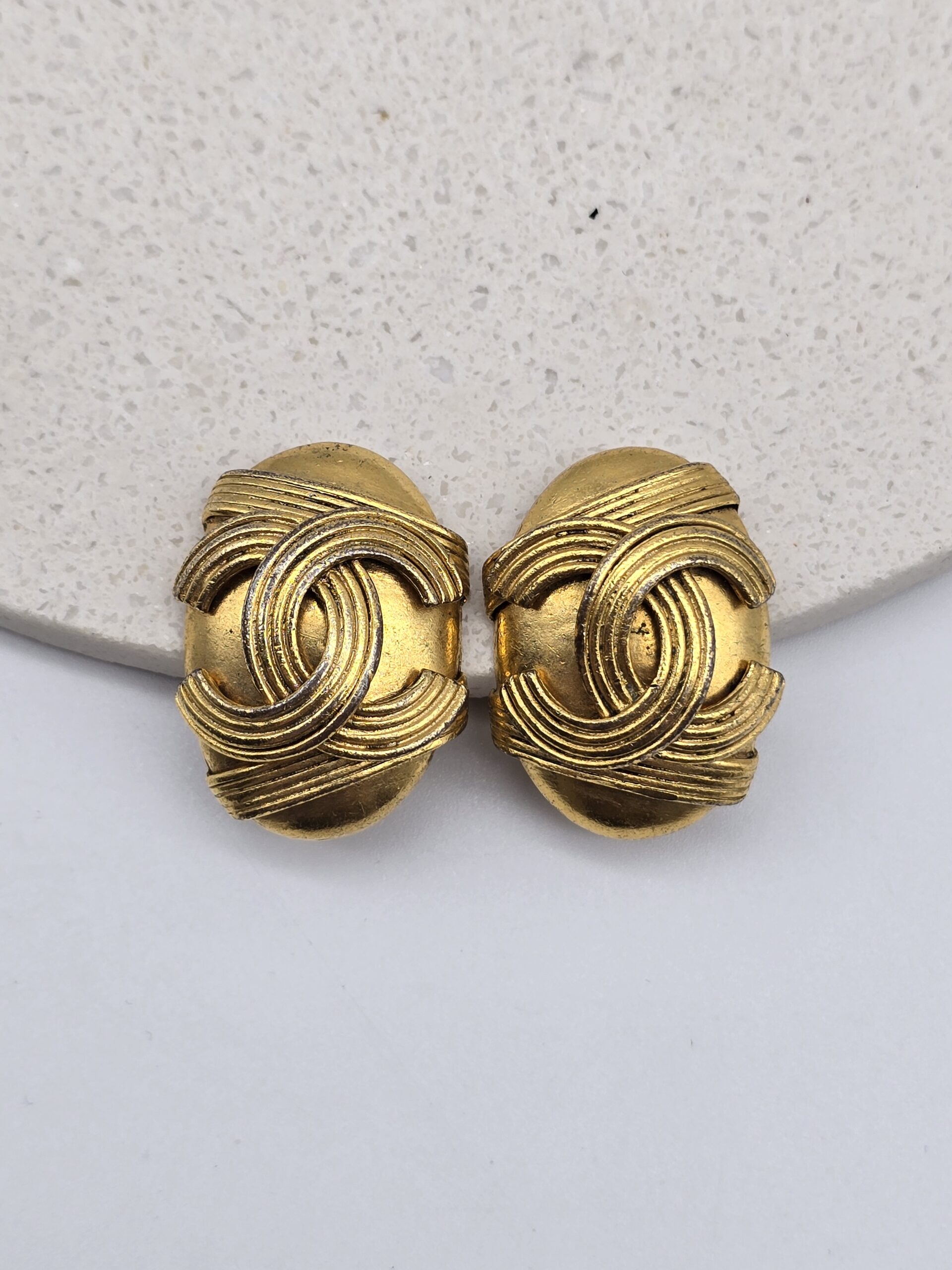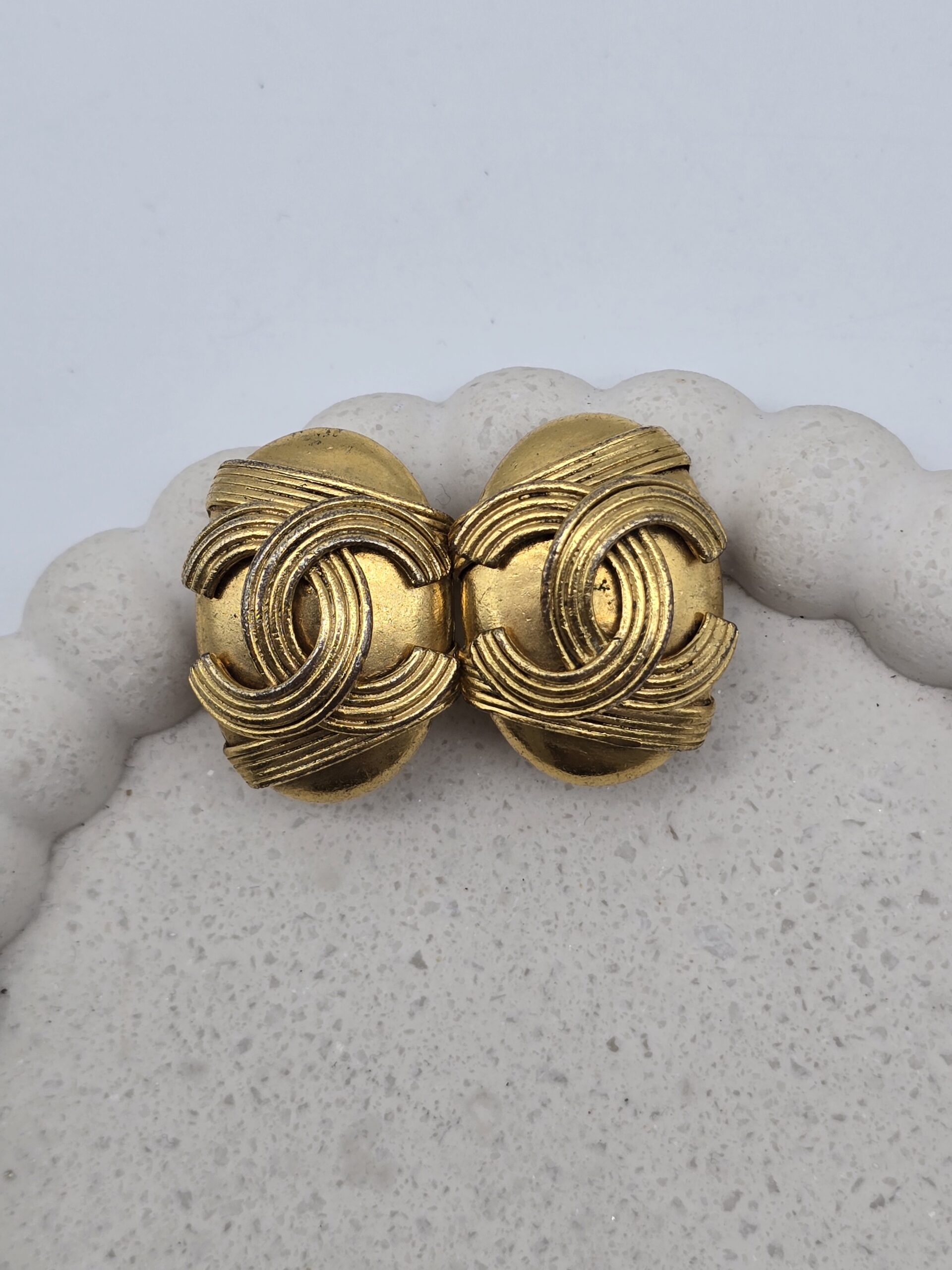 CHANEL – owalne klipsy vintage z logo CC, lata 90.