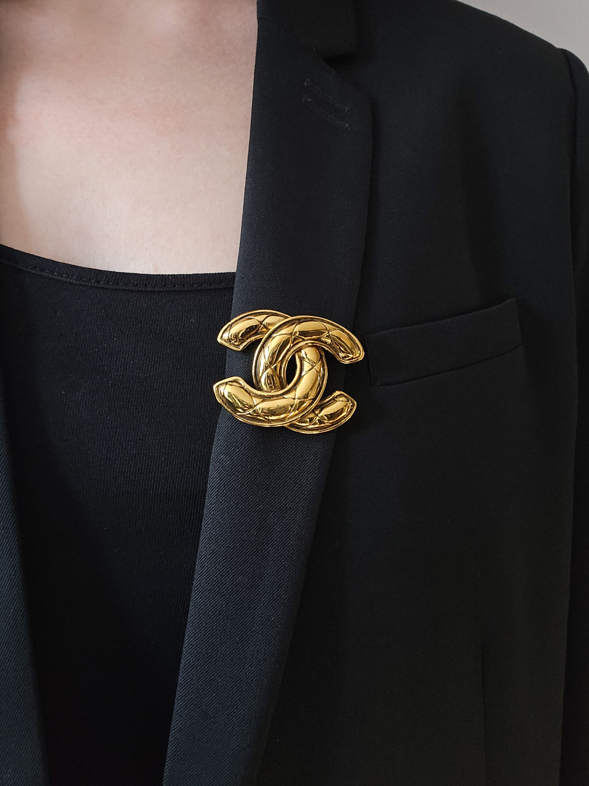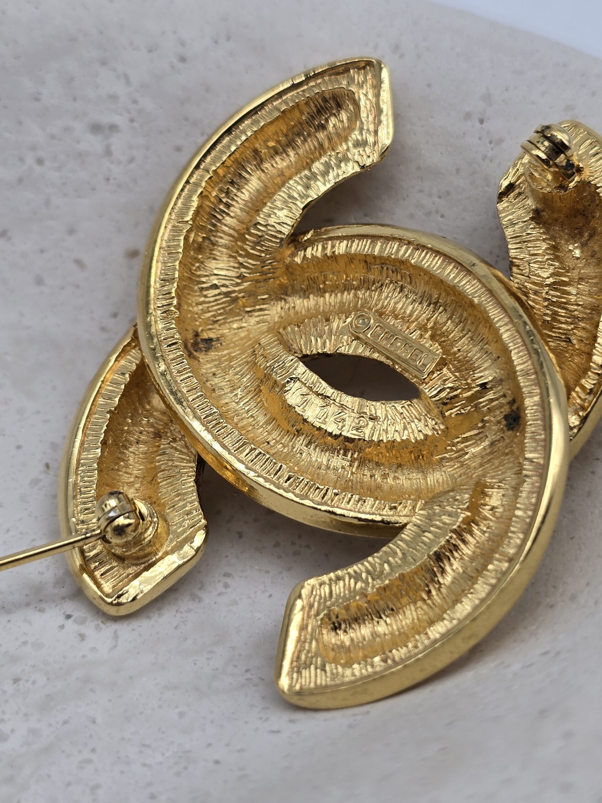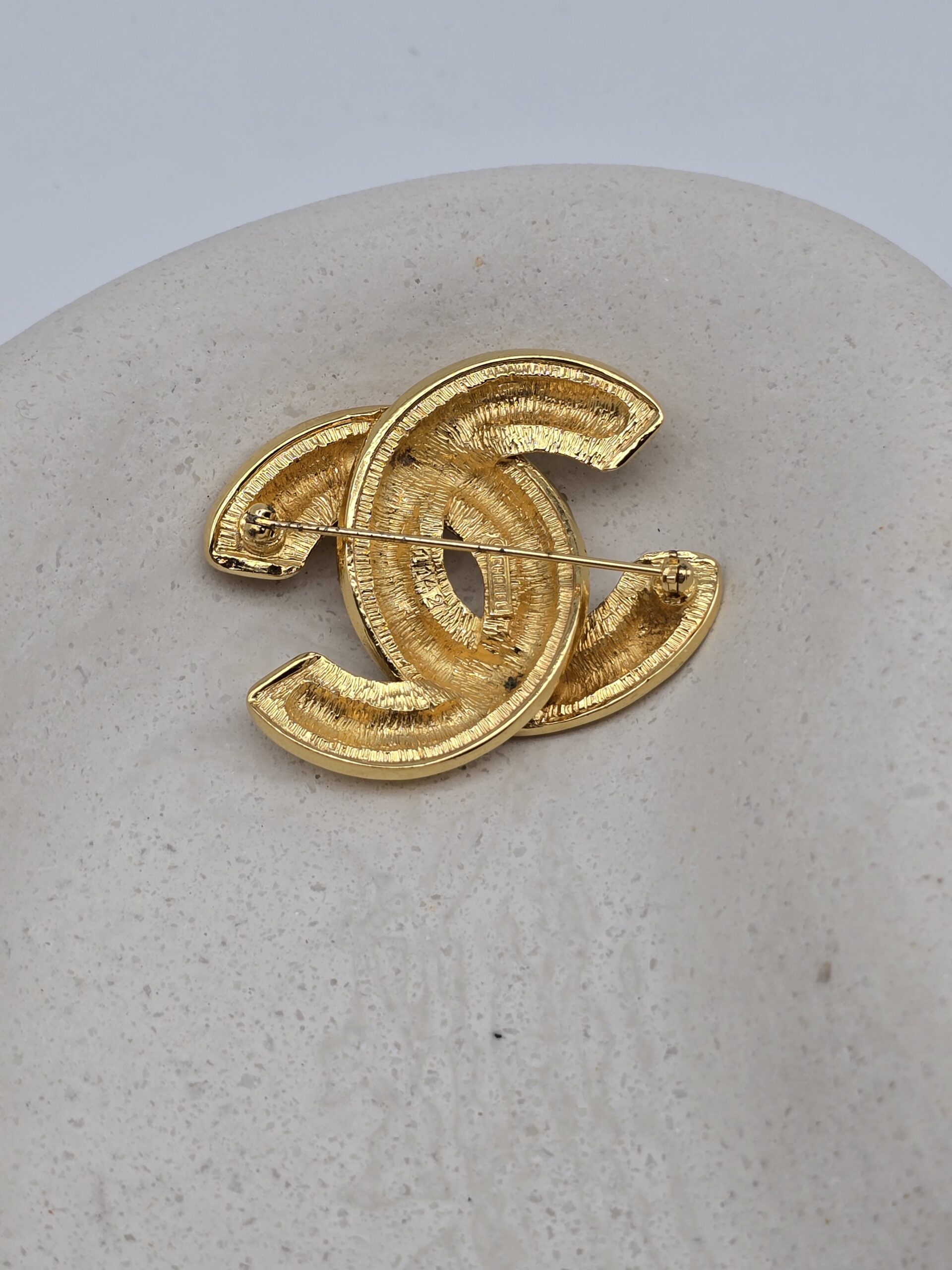 CHANEL – złota broszka vintage CC