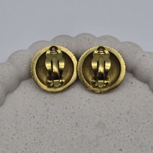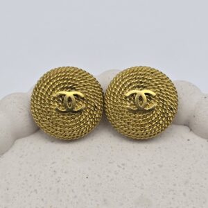 CHANEL – złote okrągłe klipsy vintage z logowaniem, lata 90.