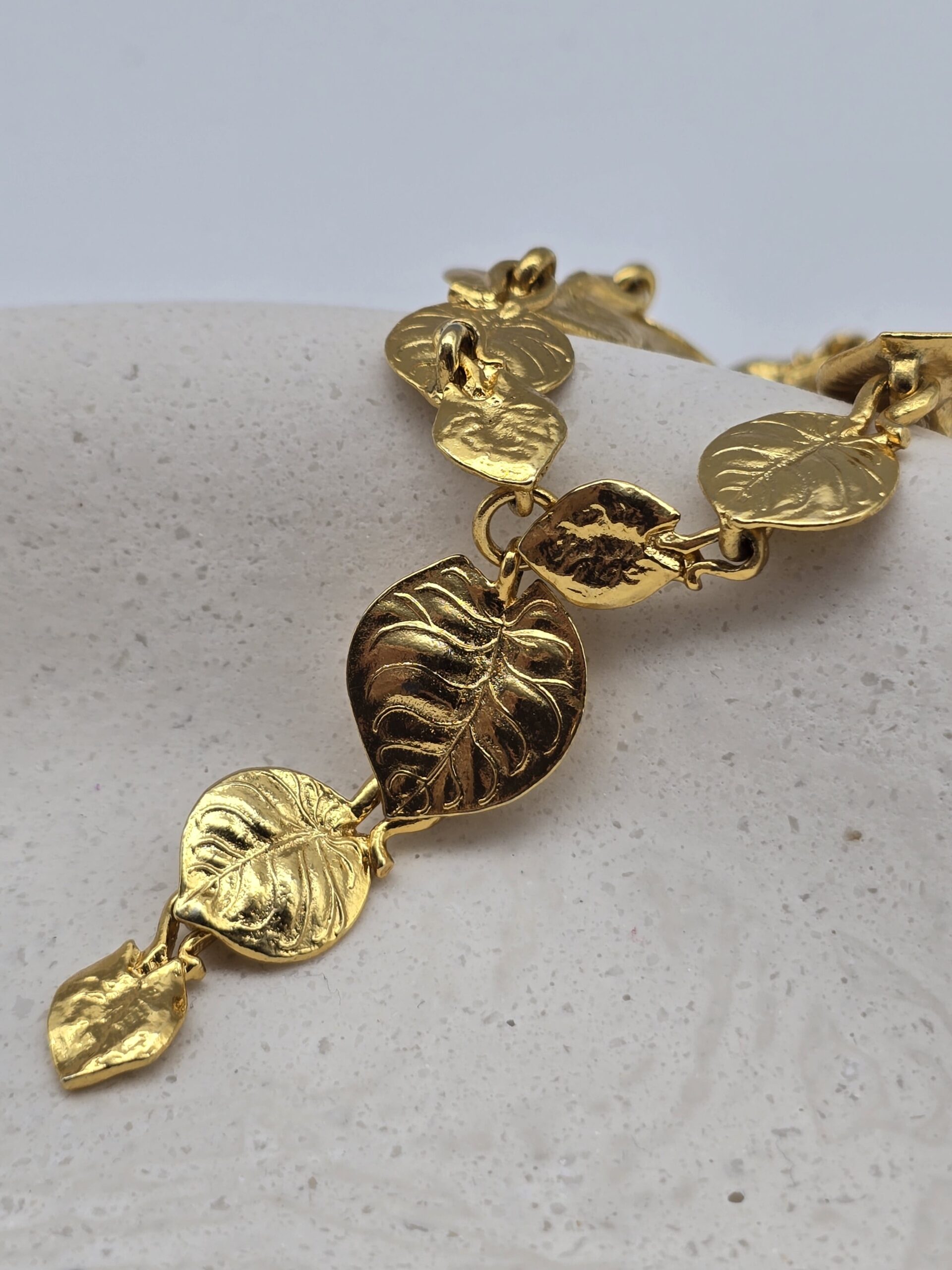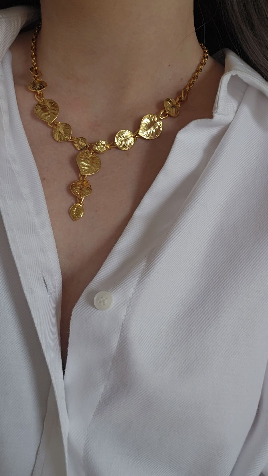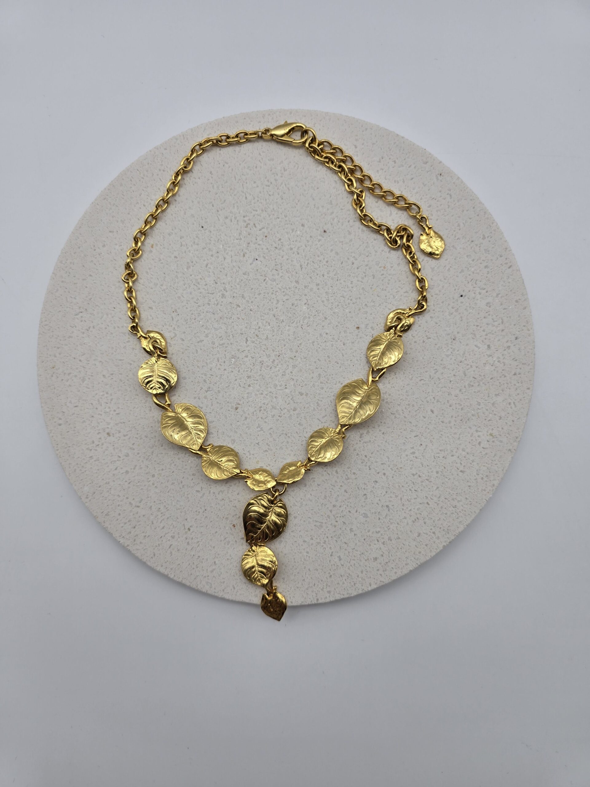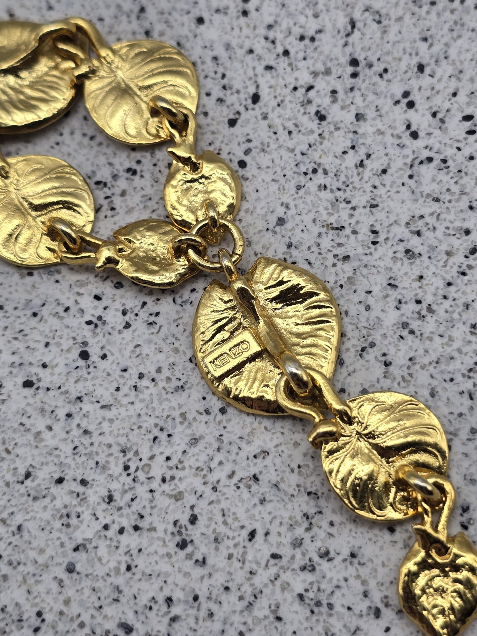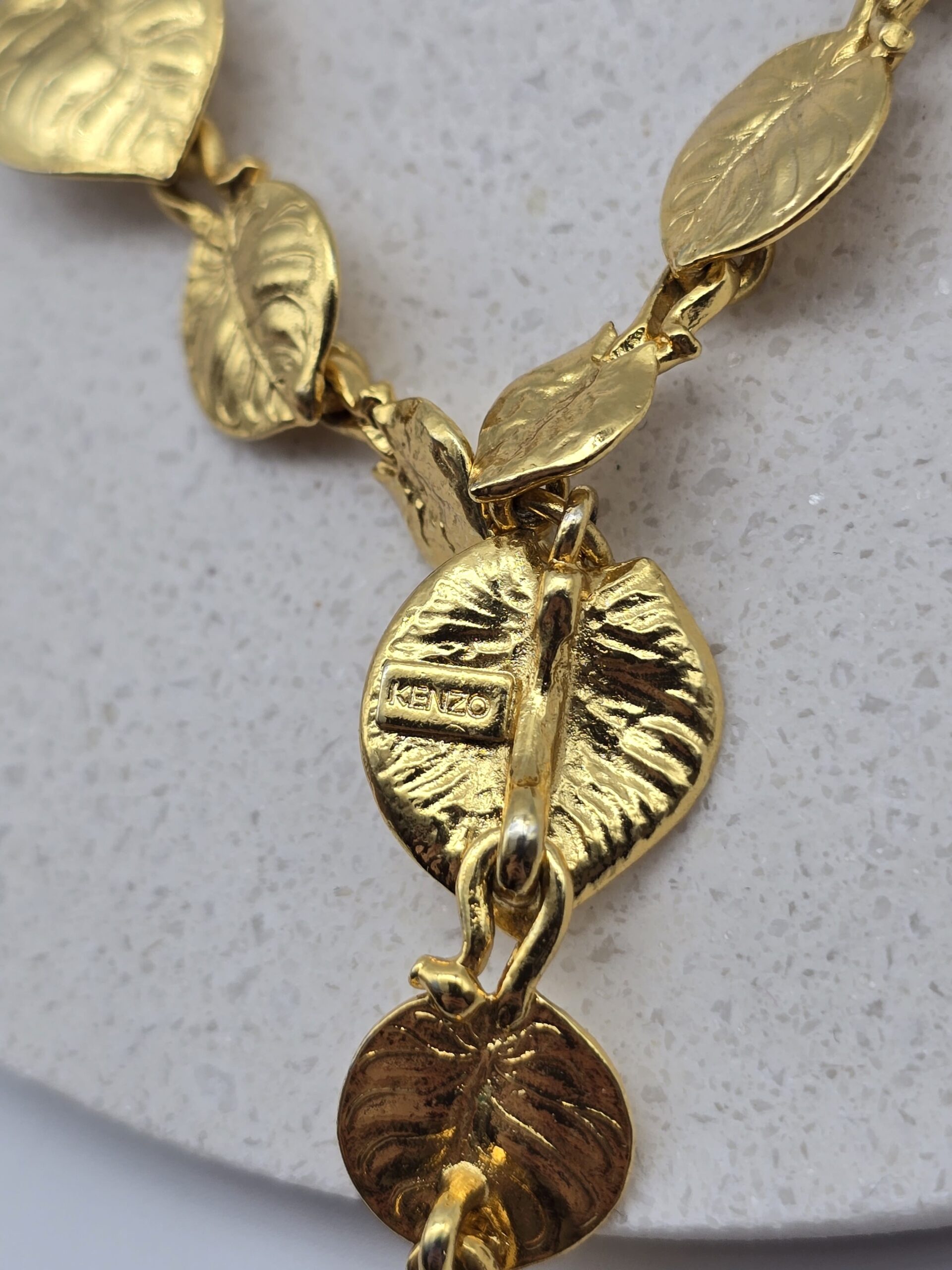 Kenzo – pozłacany naszyjnik vintage z motywem bluszczu, regulowana długość
