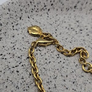 | Wyjątkowy, pozłacany naszyjnik Kenzo z kolekcji vintage, inspirowany motywem bluszczu. Precyzyjnie wykonane, ażurowe liście oplatają dekolt, tworząc efektowną kompozycję w stylu francuskiej biżuterii artystycznej. Naszyjnik posiada możliwość regulacji długości – maksymalny obwód to 46 cm, dzięki czemu łatwo dopasujesz go do każdej stylizacji i okazji. To propozycja dla kobiet ceniących oryginalność, ponadczasową elegancję oraz subtelny, artystyczny wyraz.Sygnatura Kenzo umieszczona na jednym z liści podkreśla autentyczność i wyjątkowość tej biżuterii.Stan: bardzo dobry Materiał: pozłacany metal Sygnatura: Kenzo Długość: regulowana, maksymalny obwód 46 cm Pochodzenie: vintageDodaj swojej stylizacji nutę francuskiego szyku i niepowtarzalności z naszyjnikiem Kenzo. |
