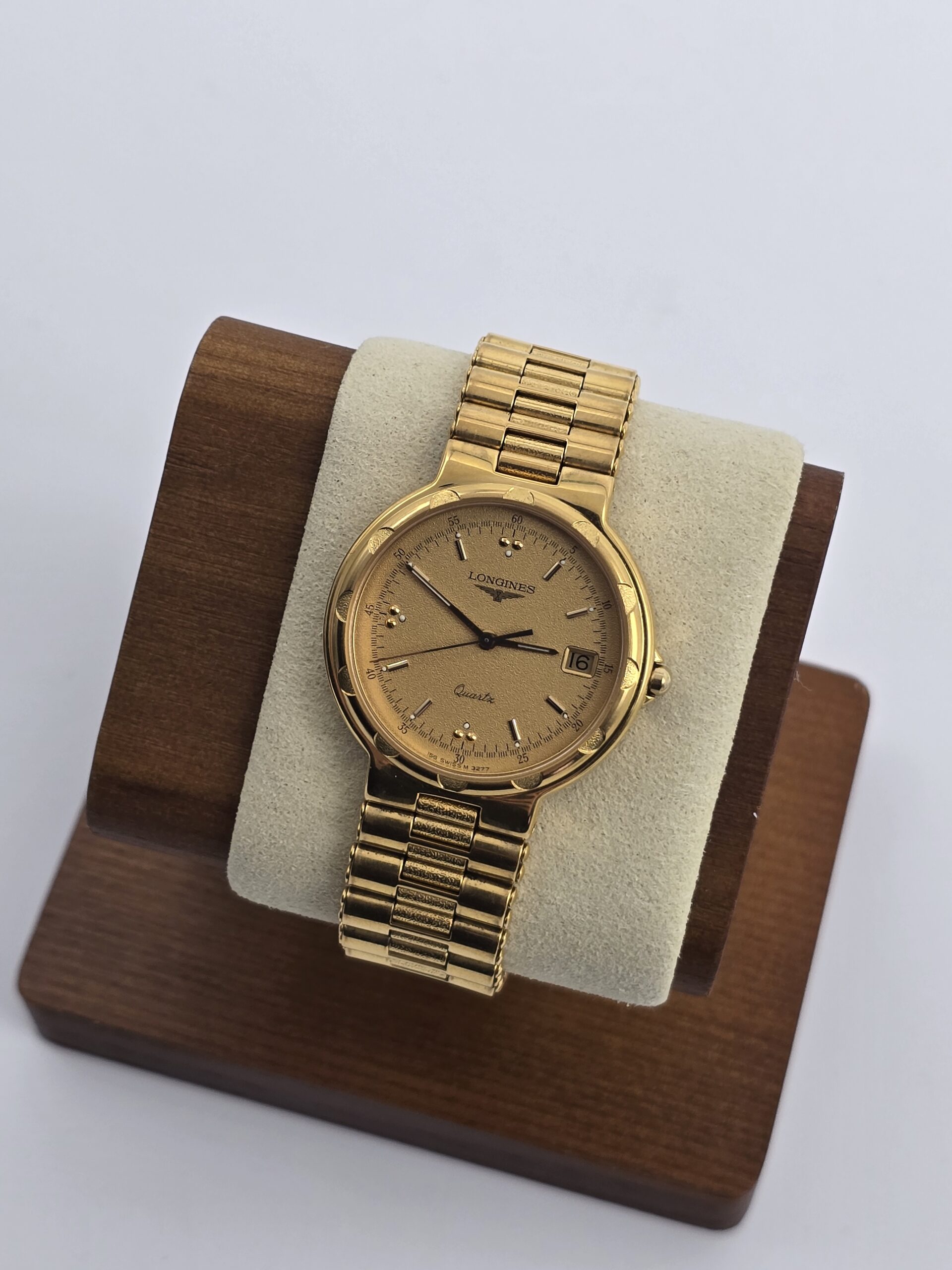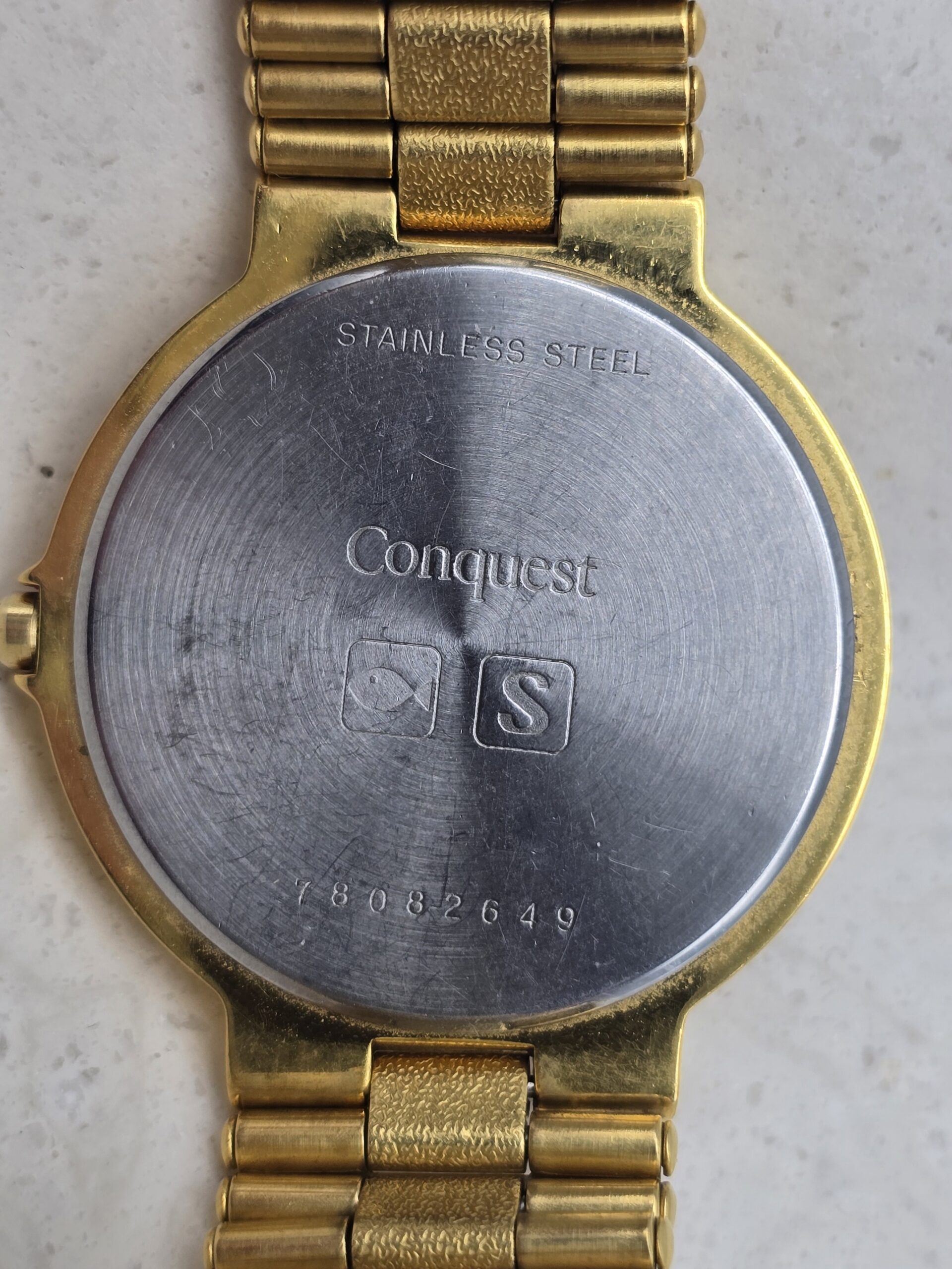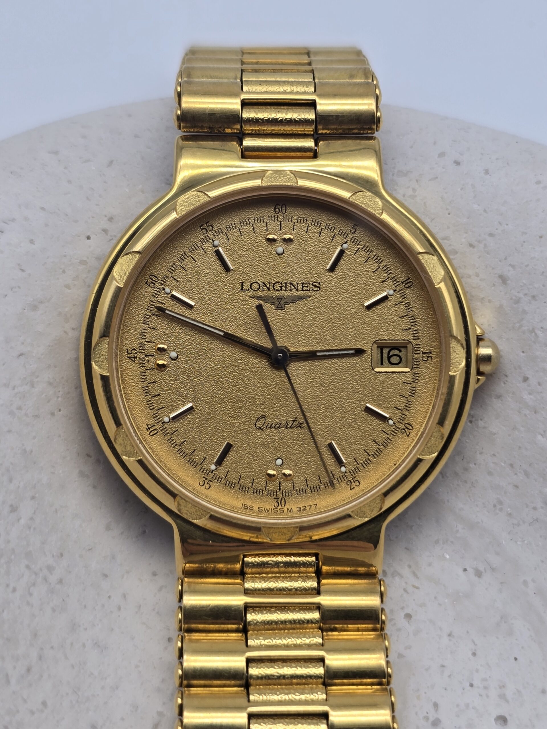 LONGINES Conquest – złoty zegarek vintage z błyszczącą tarczą, lata 90.
