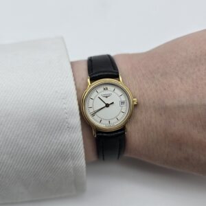 LONGINES LA GRANDE CLASSIQUE – zegarek vintage na czarnym pasku, 24mm, datownik