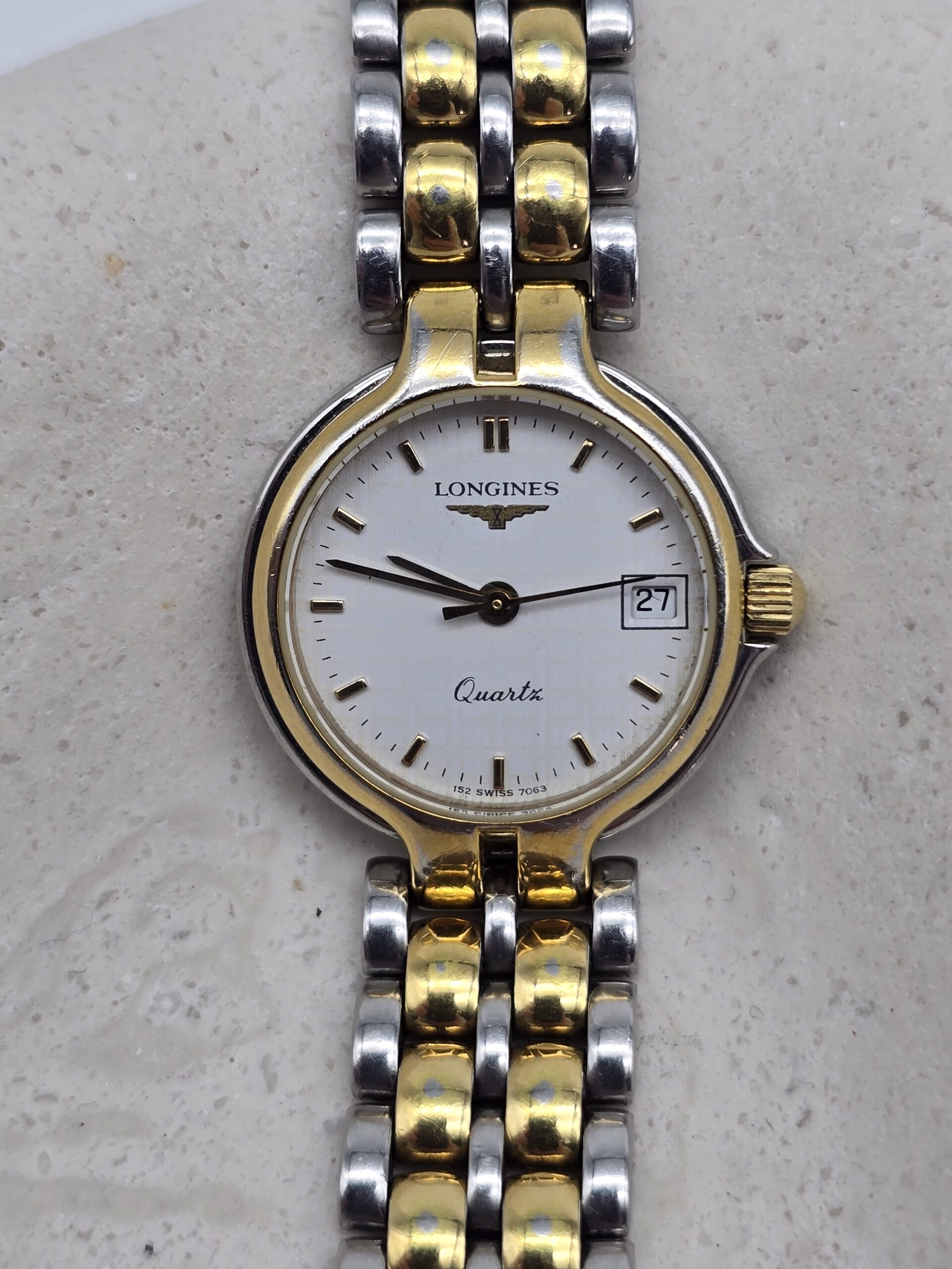 LONGINES – zegarek vintage na bransolecie z datownikiem