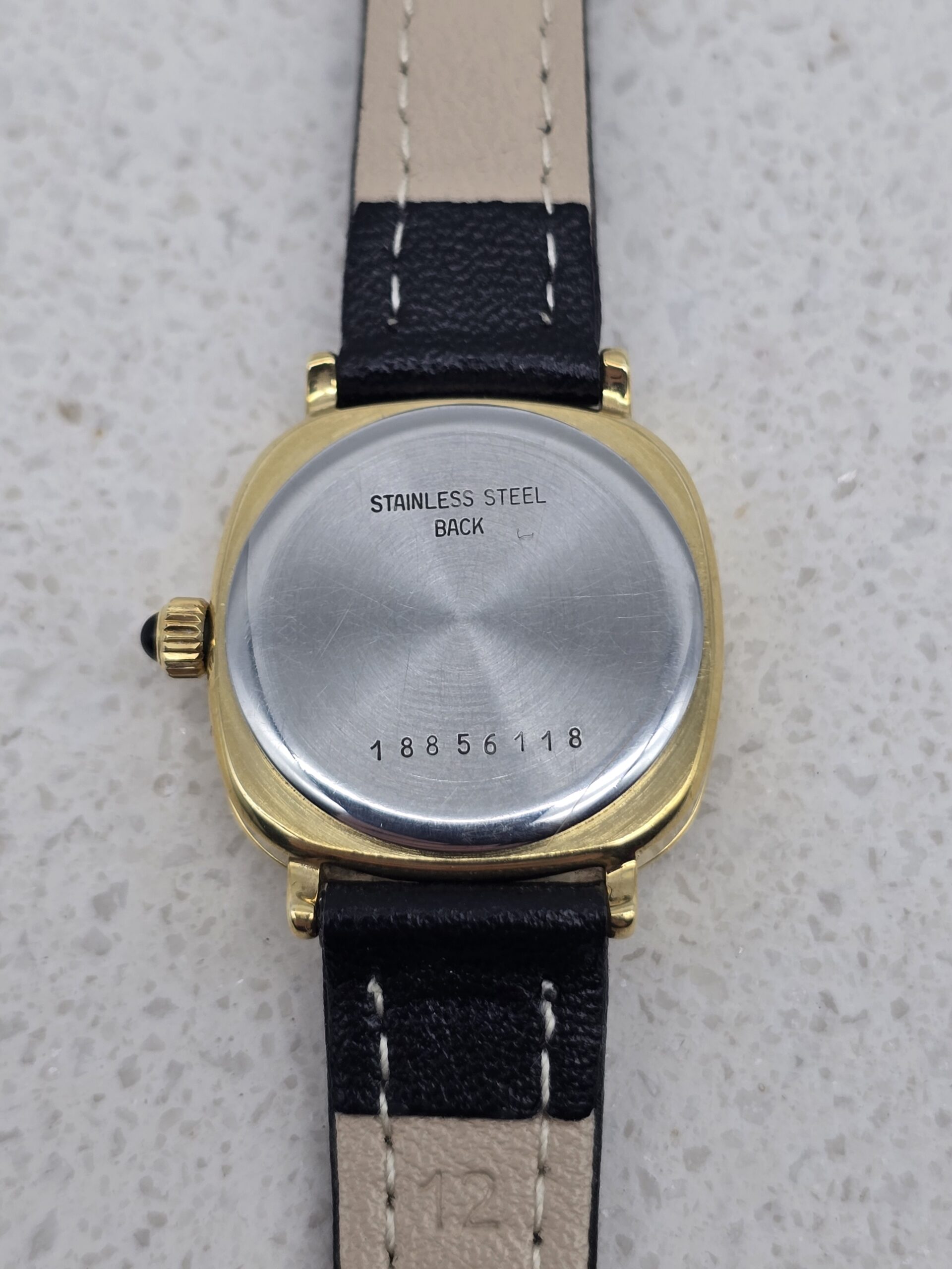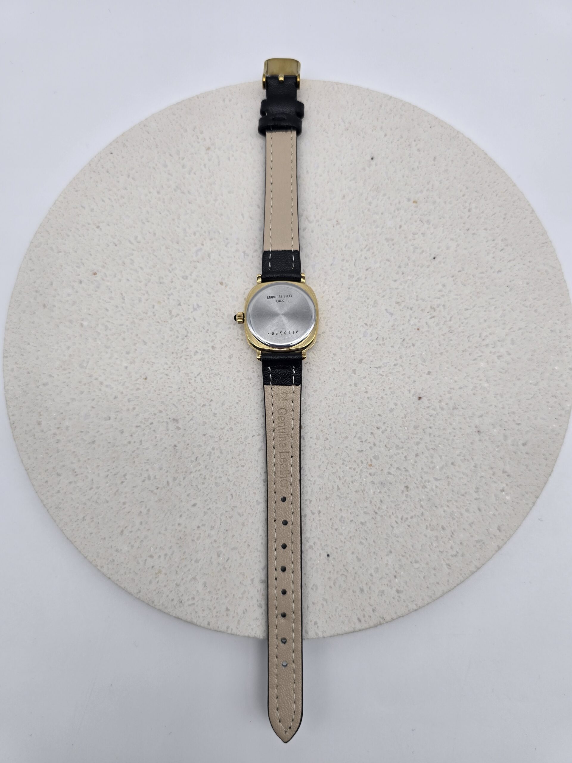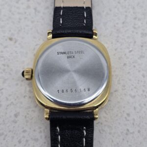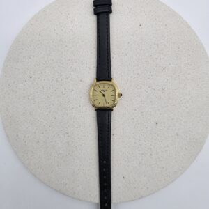 | Kompaktowy Longines z lat 80., w którym klasyka Swiss Made spotyka się z biżuteryjnym blaskiem. Kwadratowa koperta 2,3×2,3 cm i tarcza mieniąca się drobinkami złota tworzą subtelny, elegancki akcent na nadgarstku.