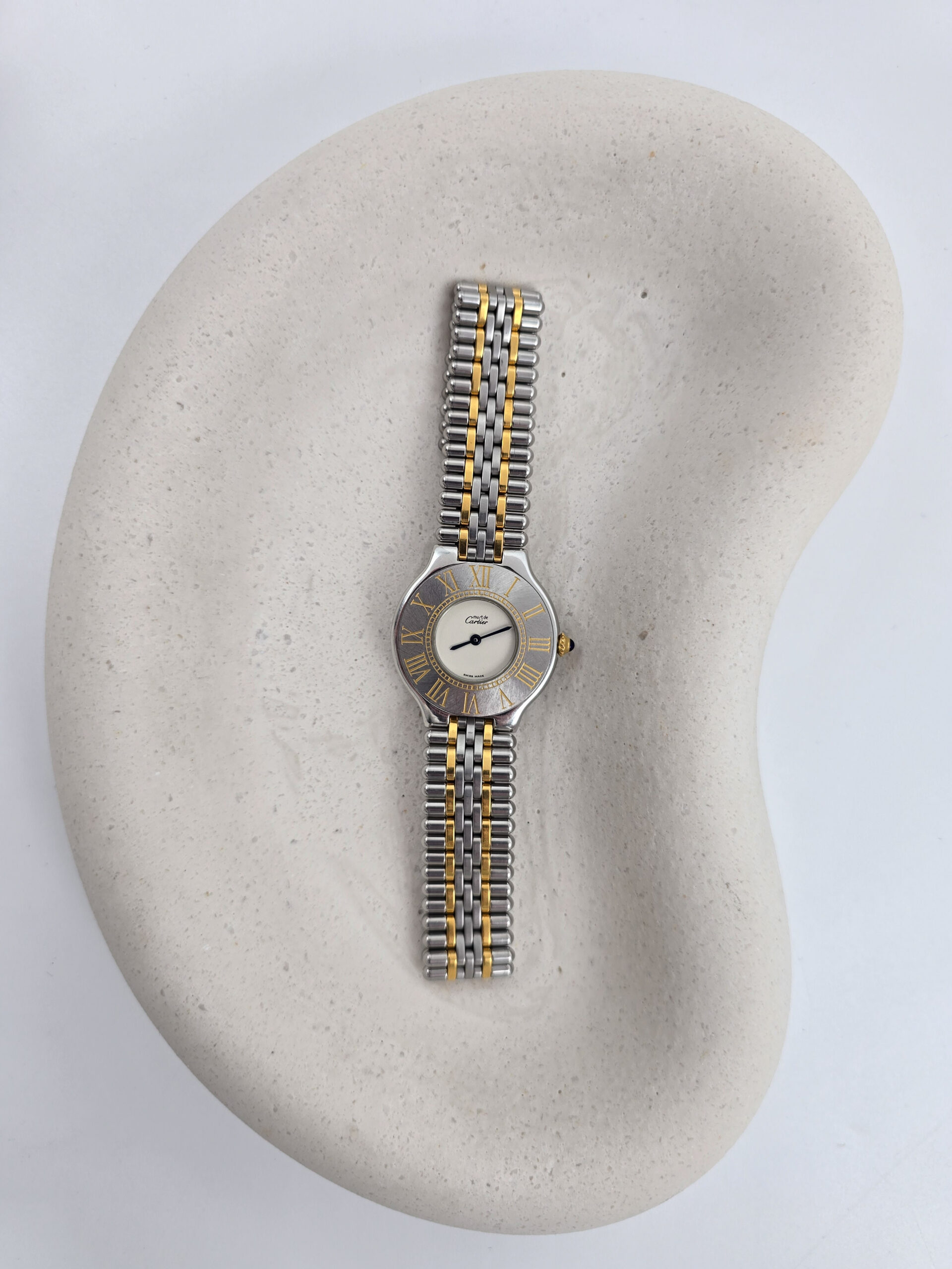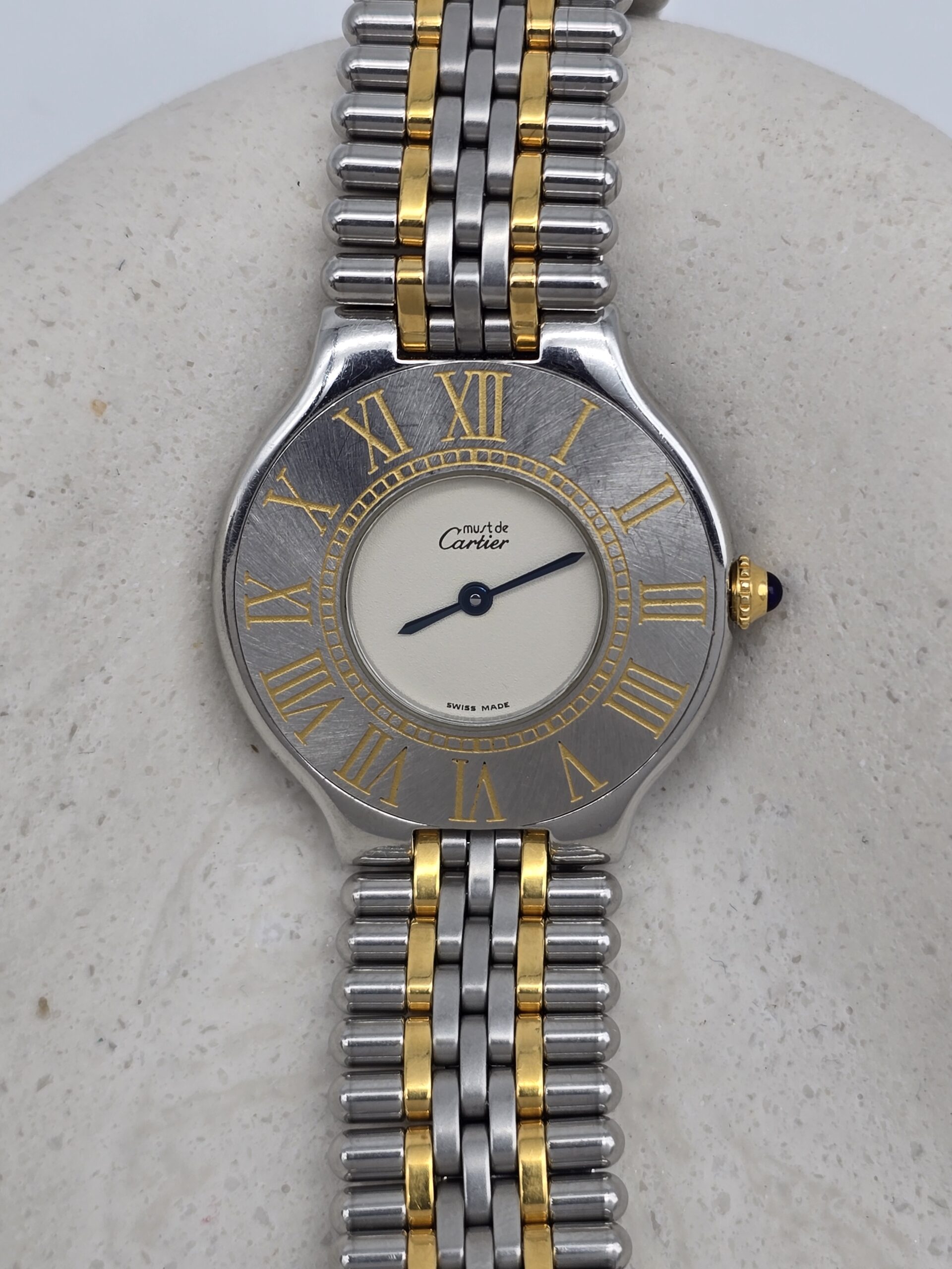 MUST DE CARTIER 21 – srebrno-złoty zegarek vintage na bransolecie