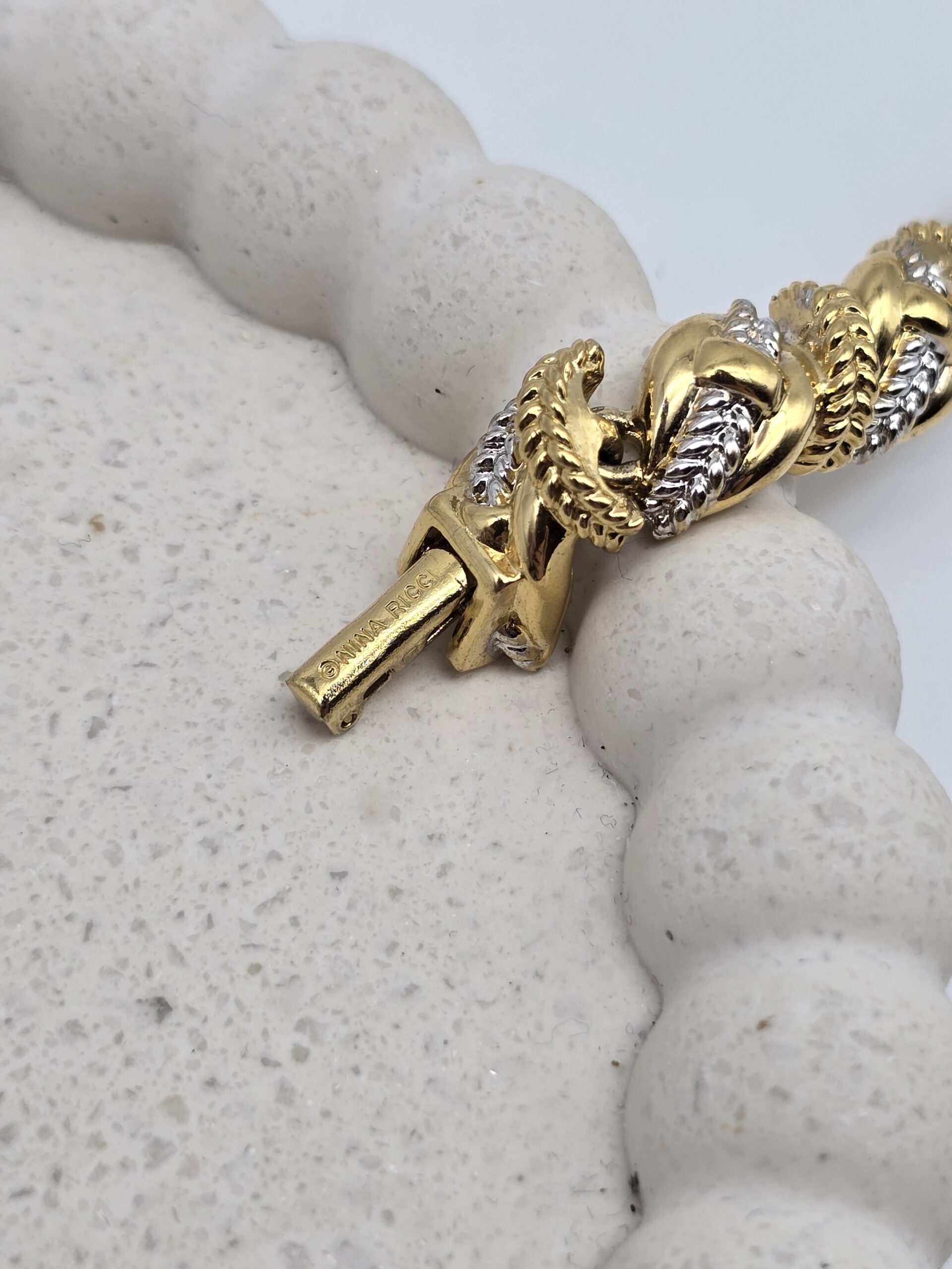 NINA RICCI – bransoletka vintage, złoto/srebro, pozłacana