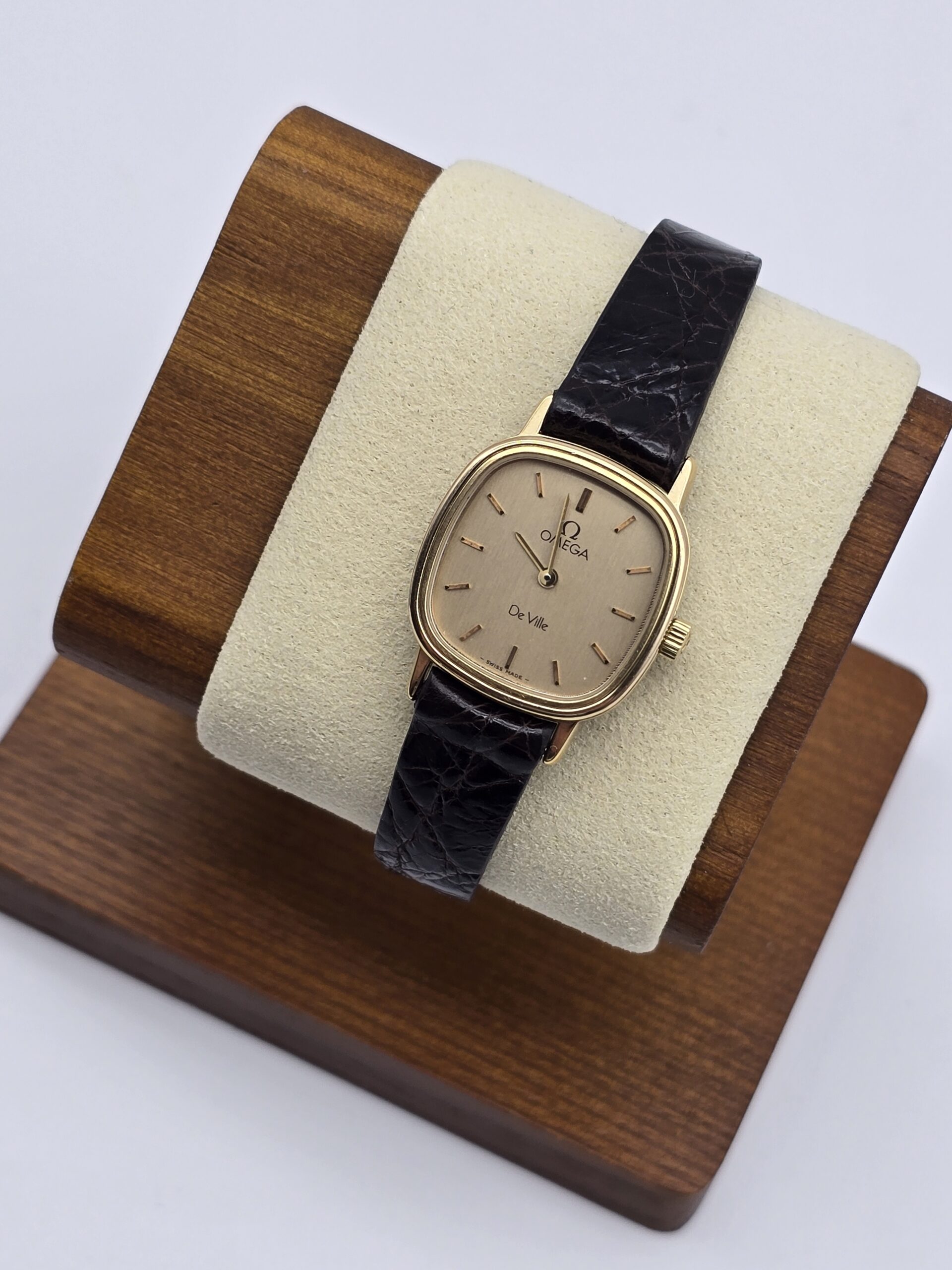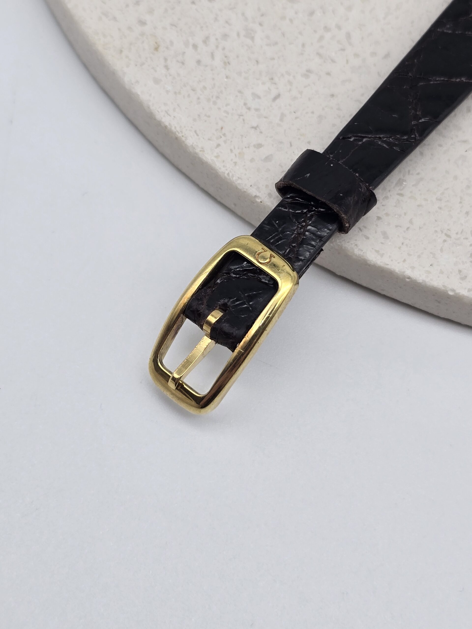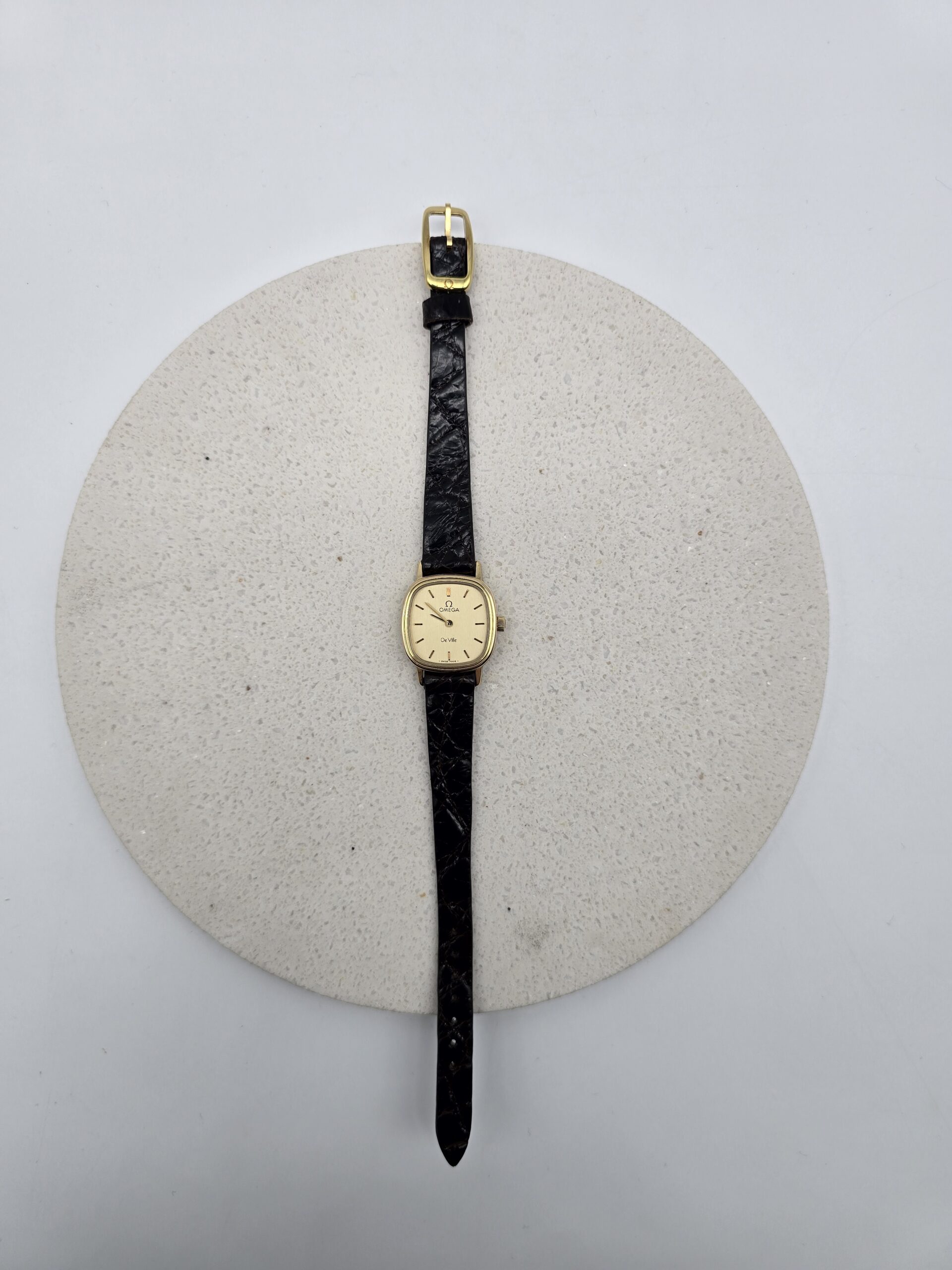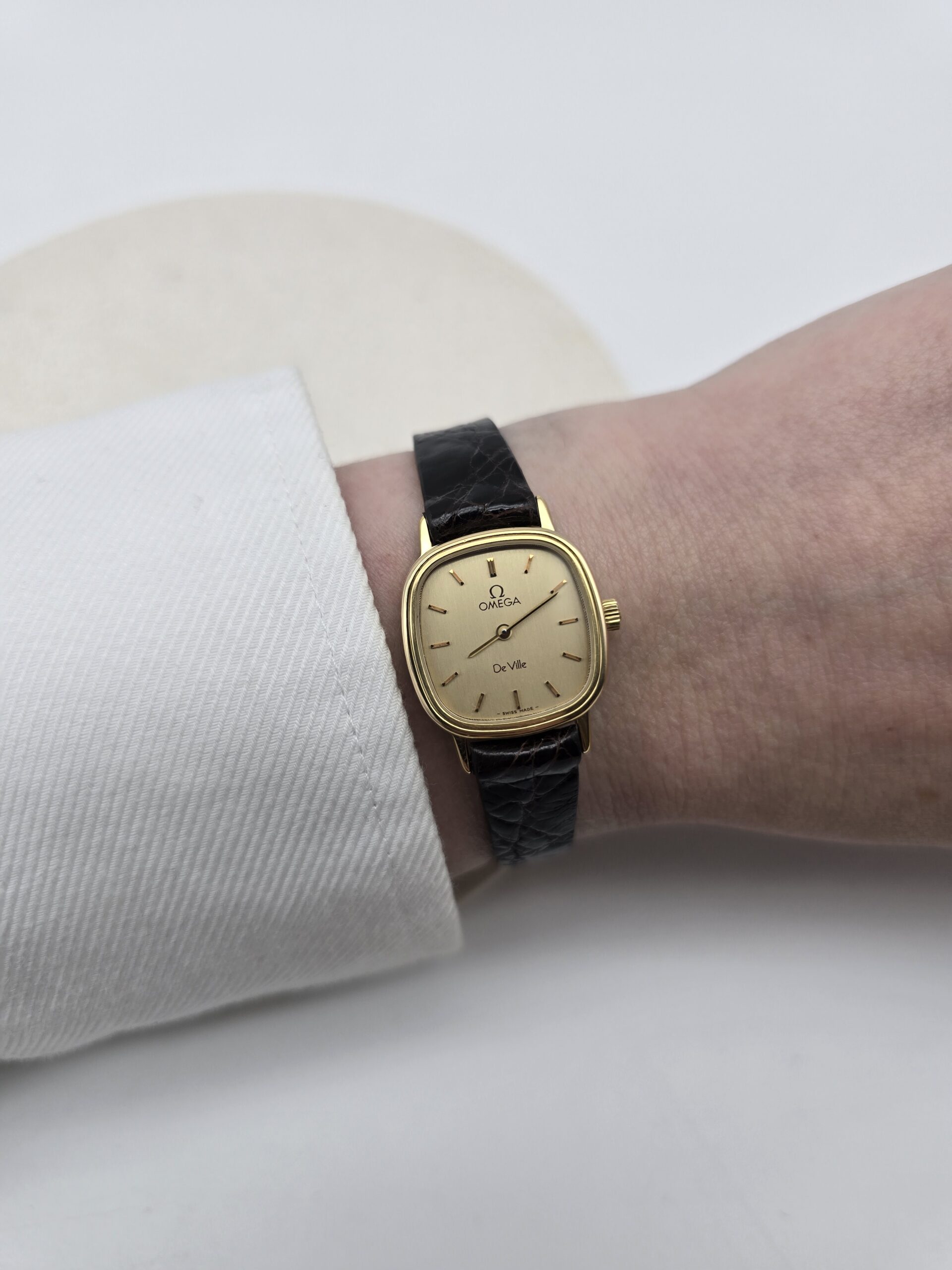OMEGA DE VILLE – Złoty zegarek vintage, czarny pasek