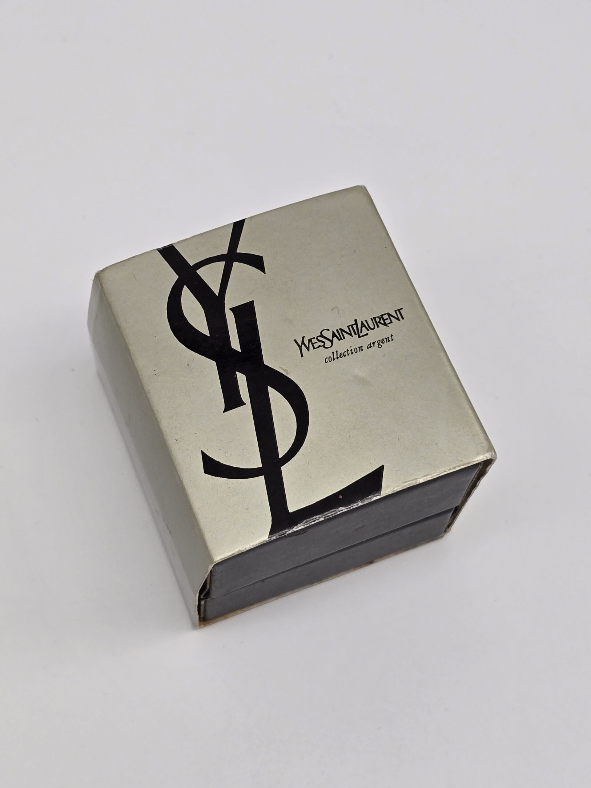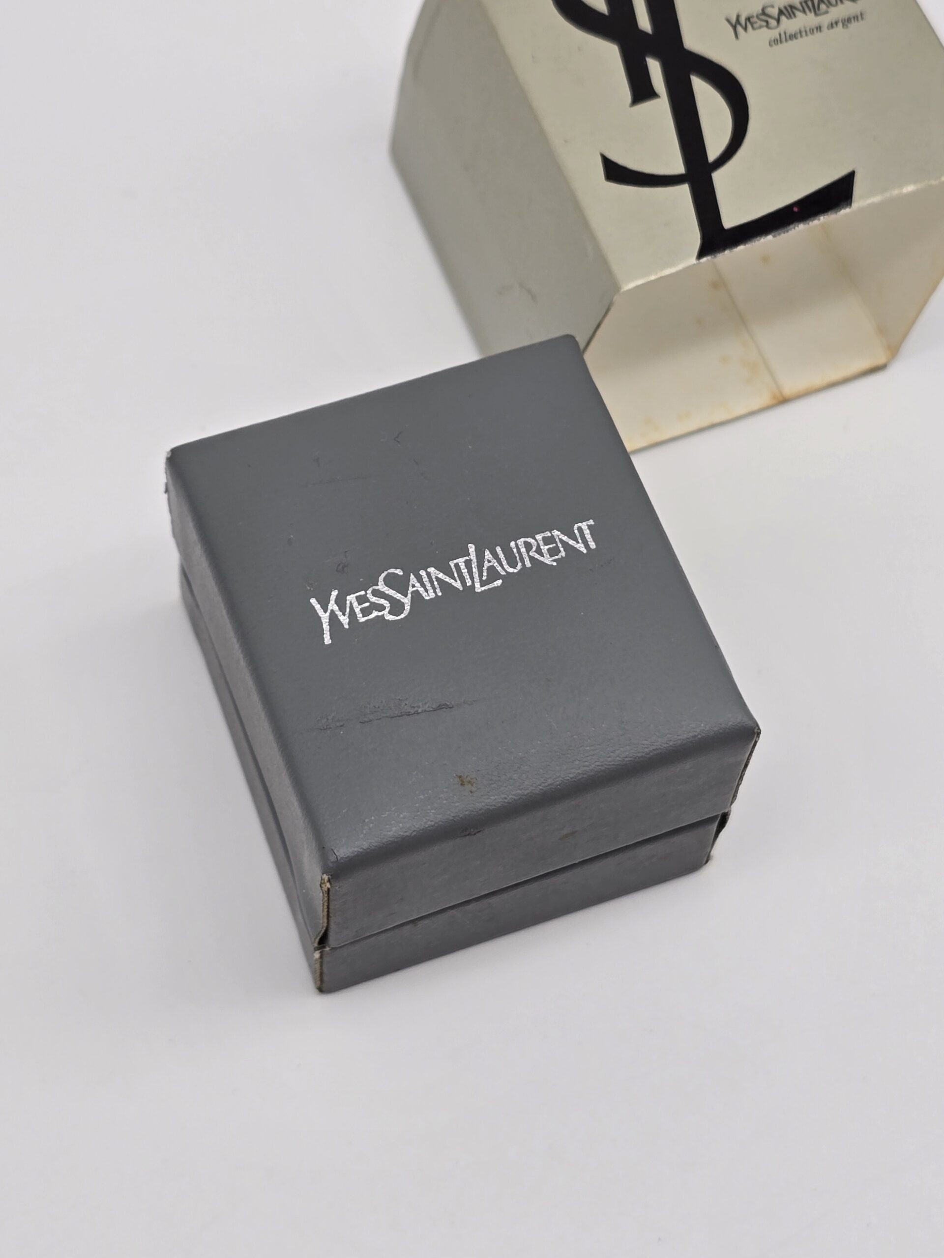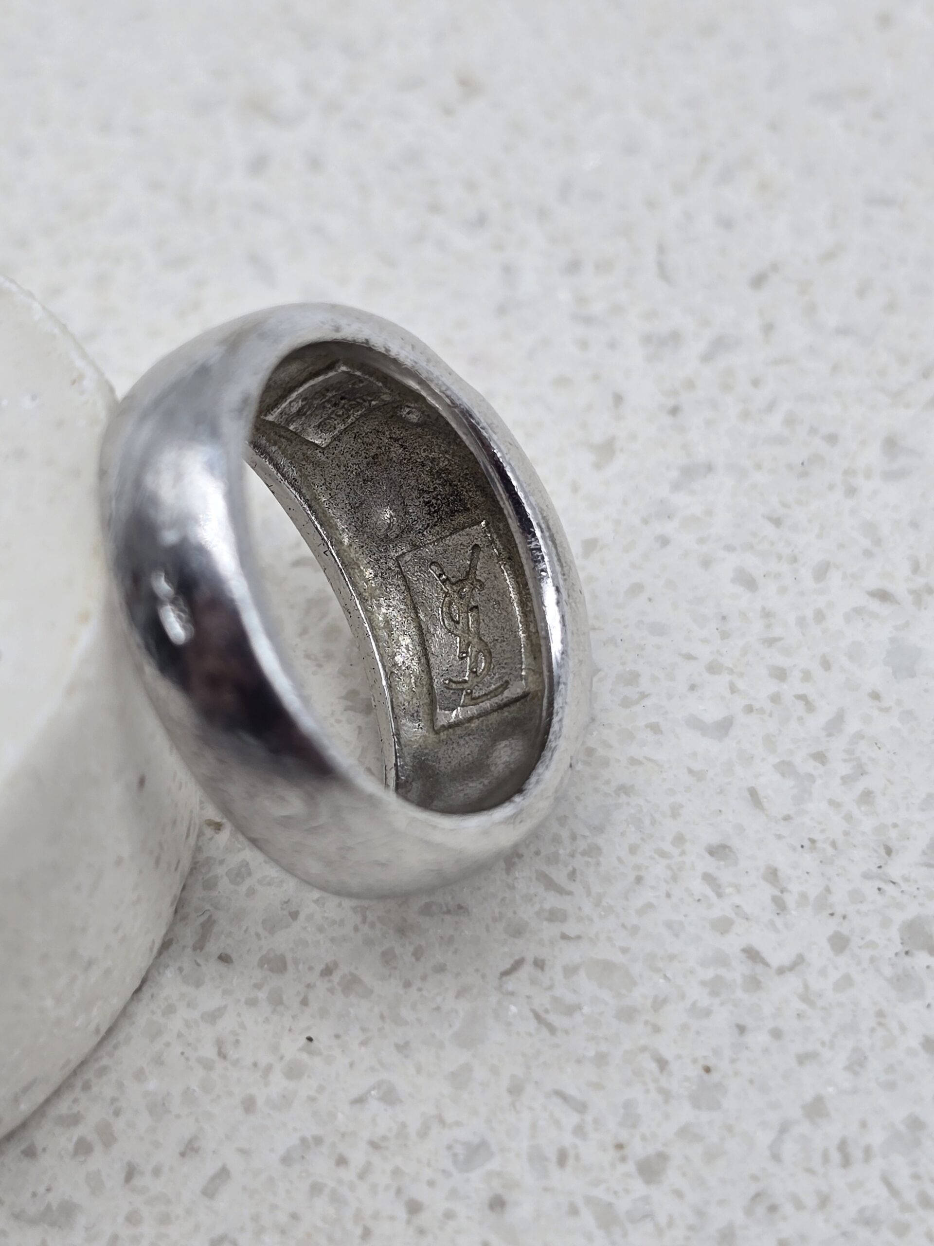 Srebrny pierścionek – obrączka Yves Saint Laurent z kolekcji Argent. Wykonany z prawdziwego srebra próby 925. Model z lat 90.