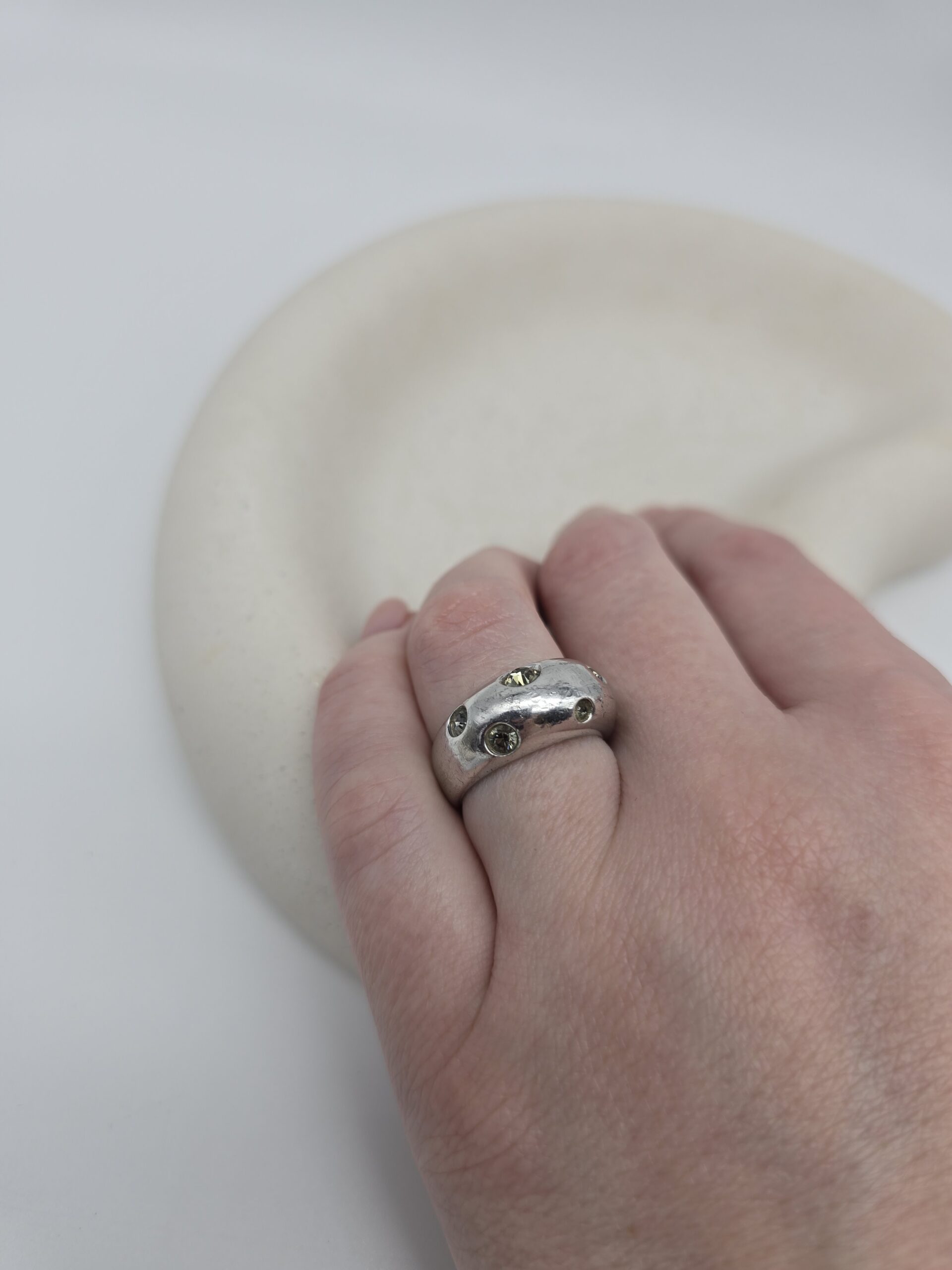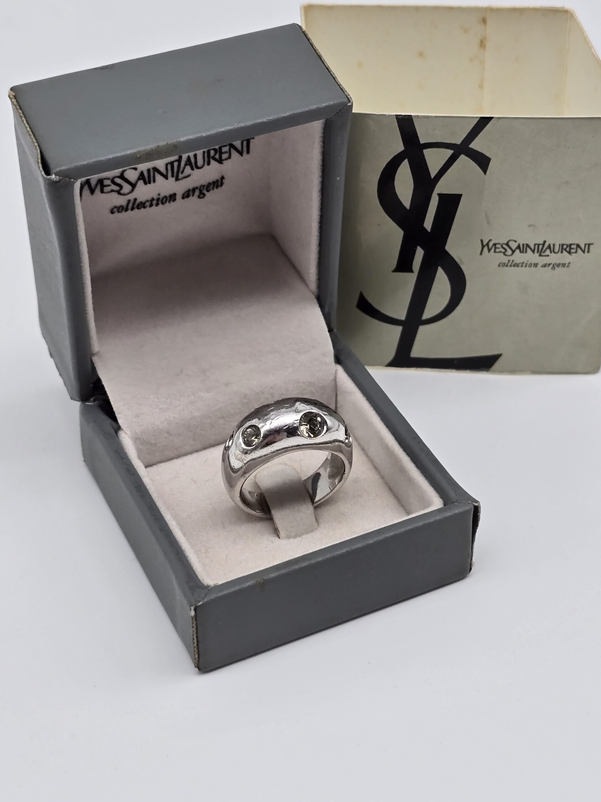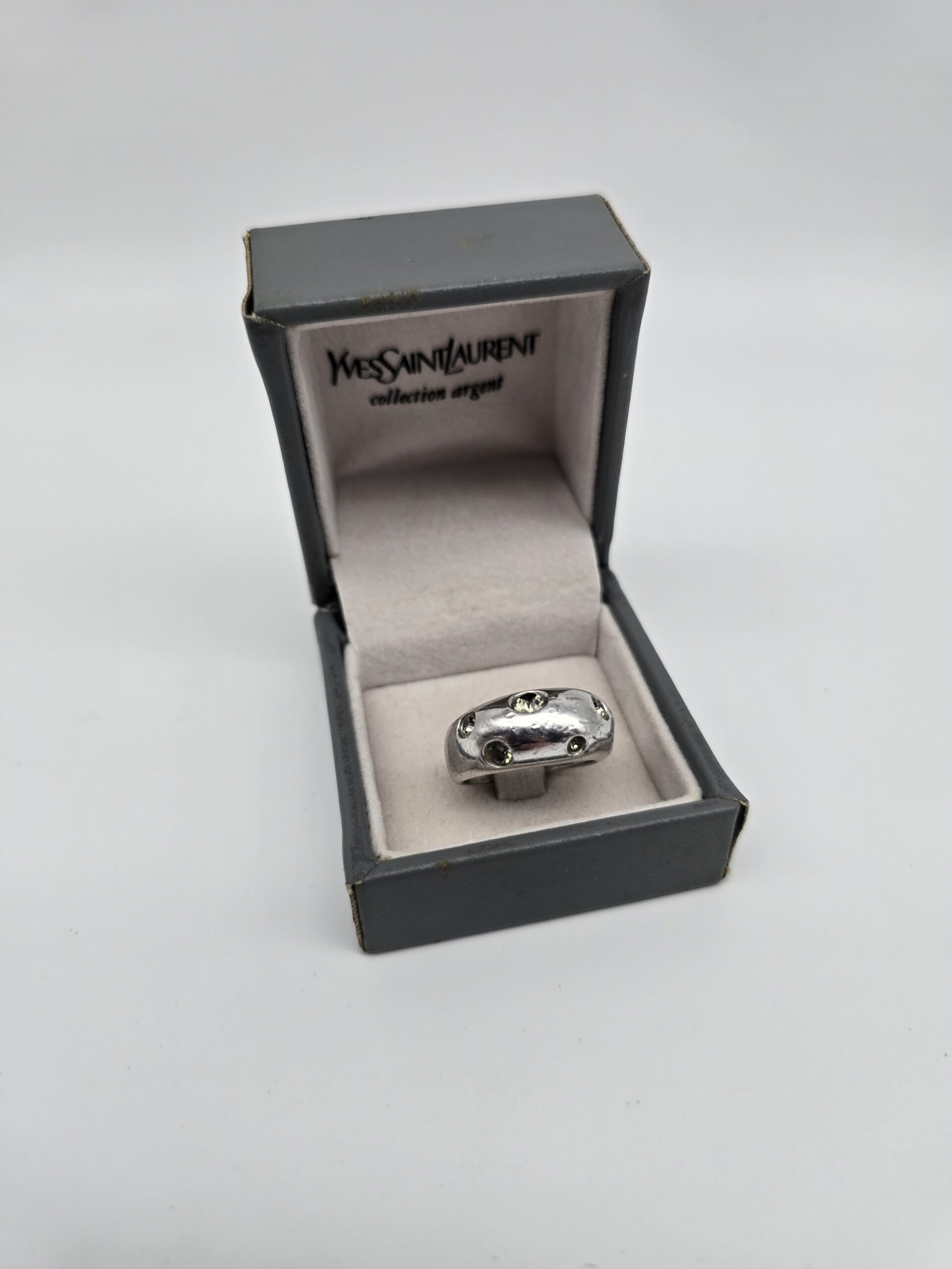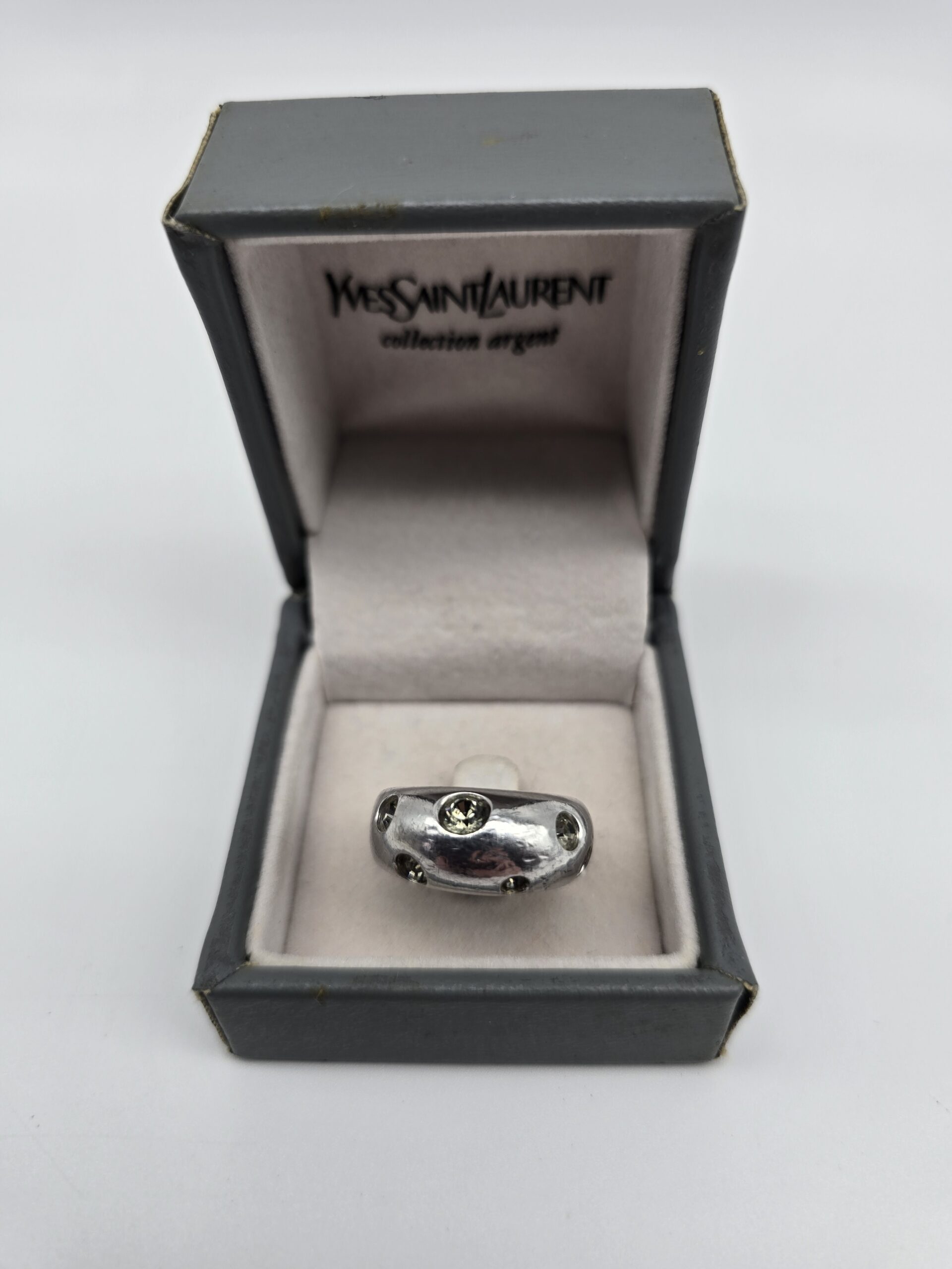YSL – srebrny pierścionek vintage z kryształkami, srebro 925, lata 90.