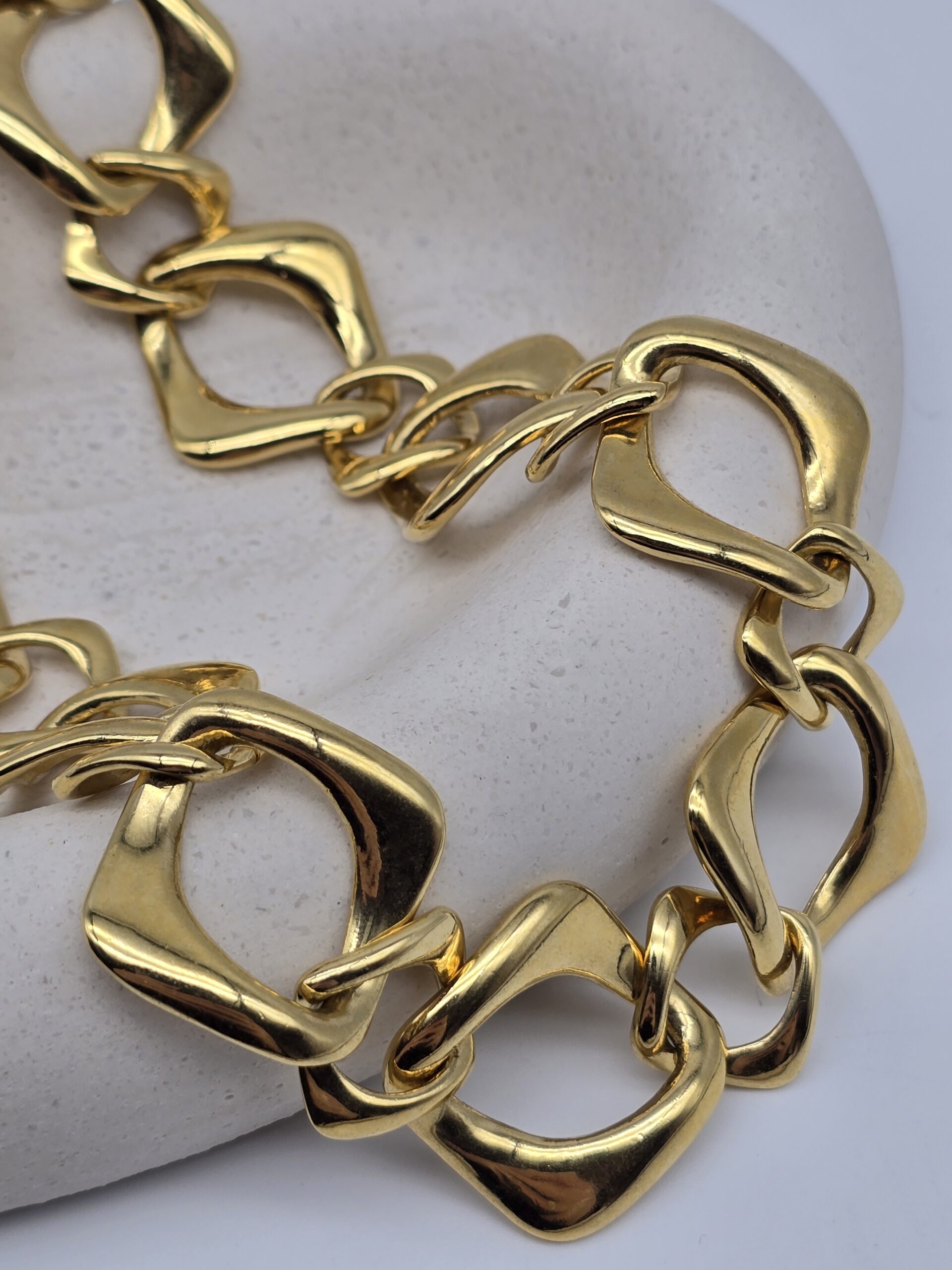 YSL – złoty naszyjnik, choker, łańcuch vintage, geometryczne ogniwa, 45cm