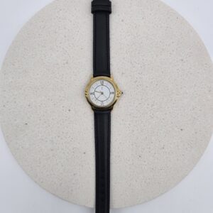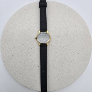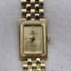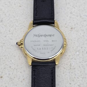 YVES SAINT LAURNET – zegarek vintage na czarnym pasku, złota koperta